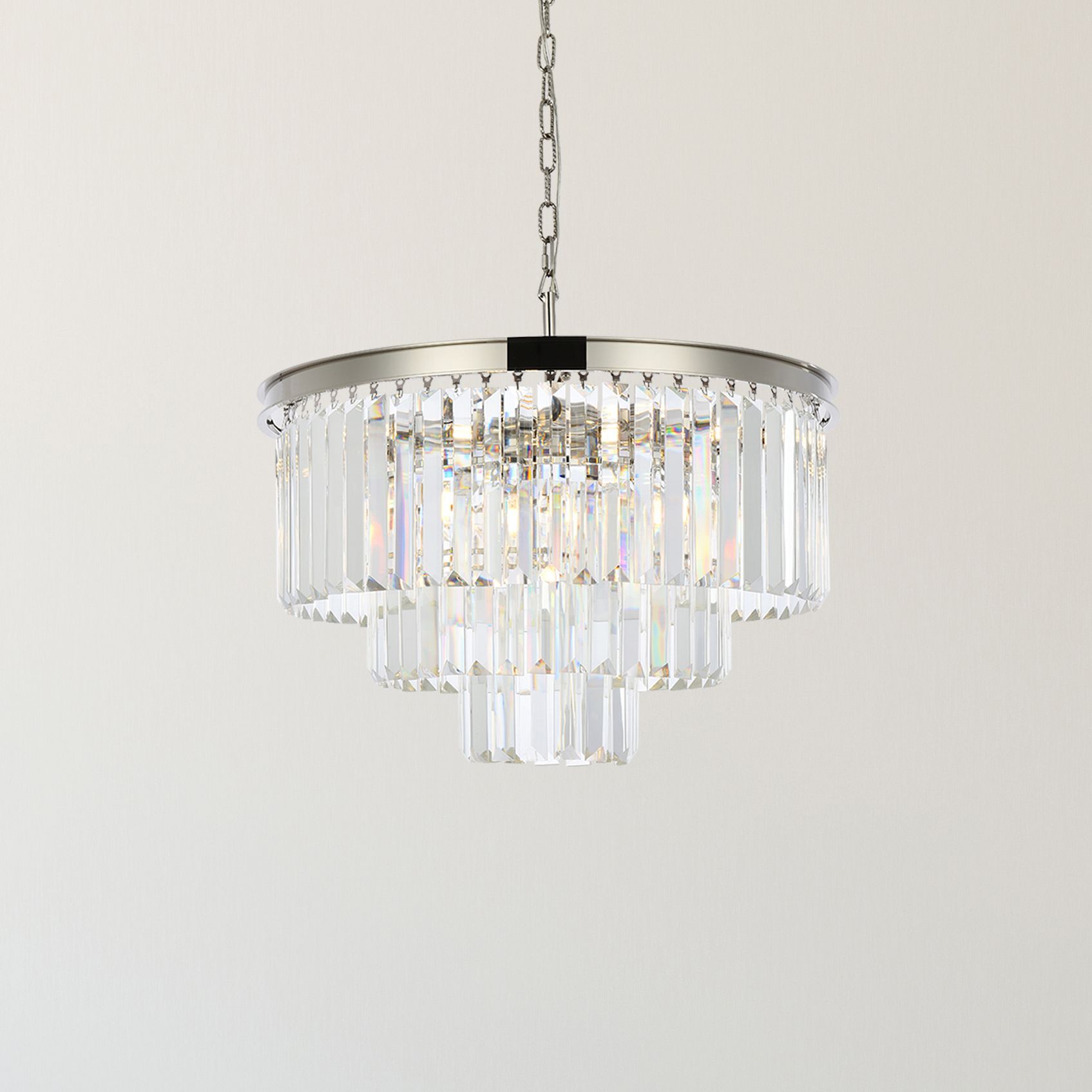 Sydney 26"W Polished Nickel Crystal Tiered 9-Light Pendant