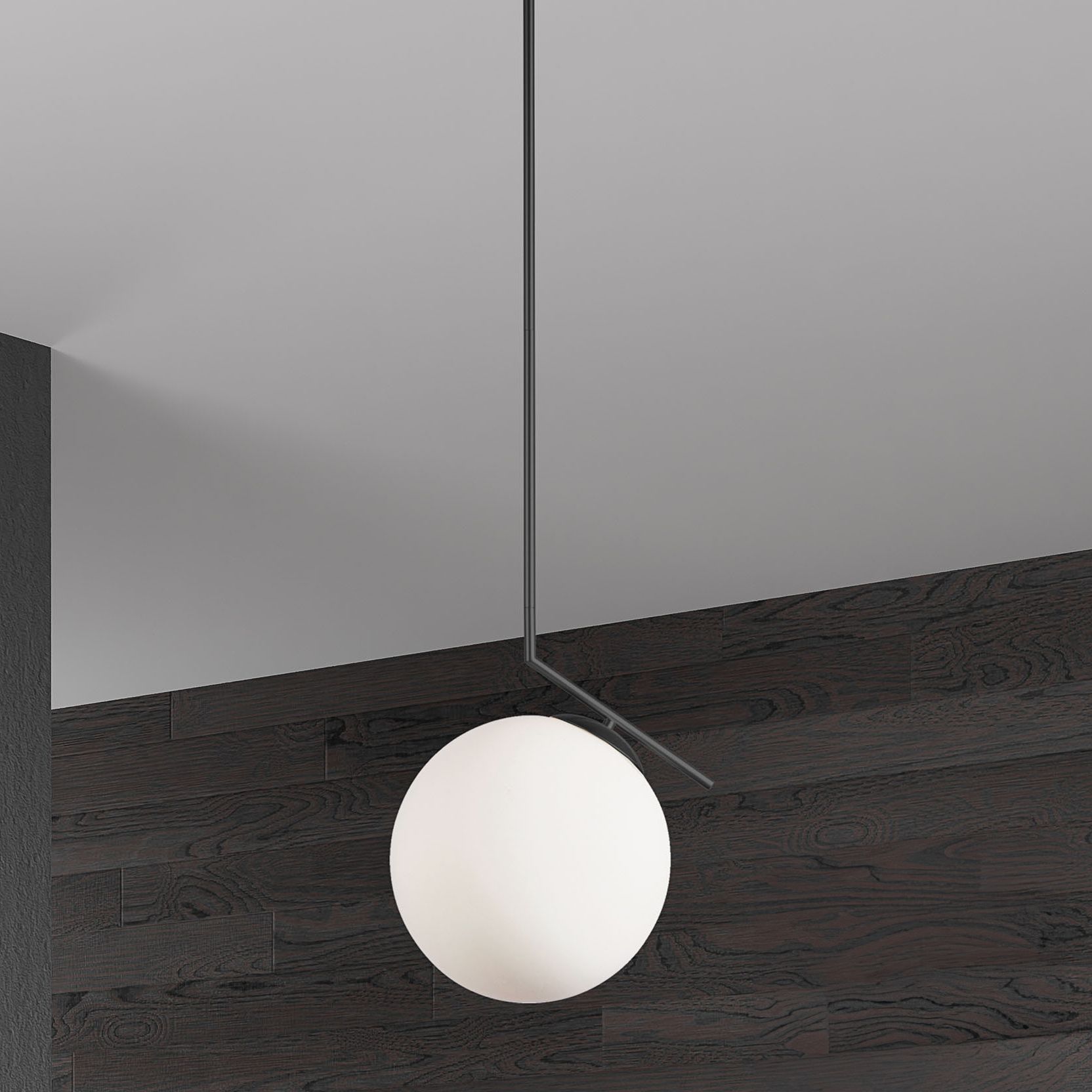 Orion 14"W Black Metal and Opal Glass Globe Pendant Light