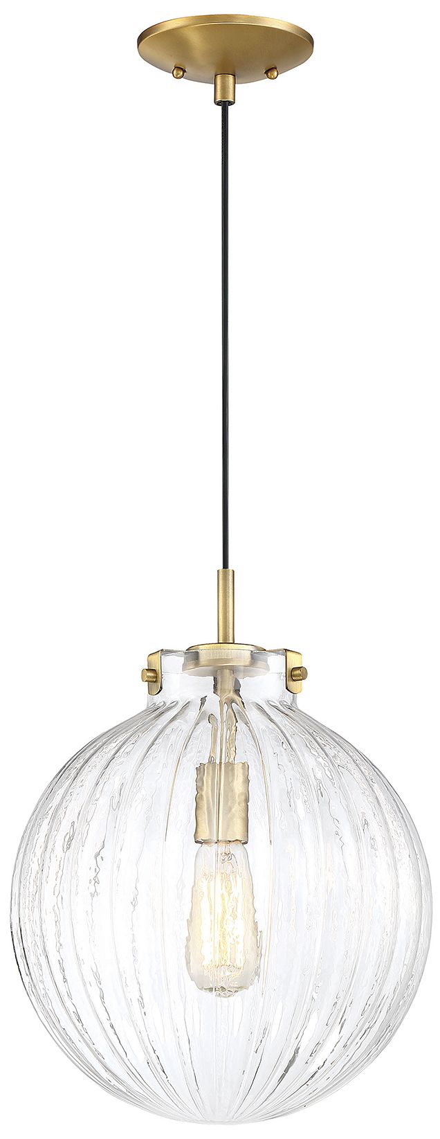 Savoy House Meridian 12"W Brass Ribbed Glass Mini Pendant