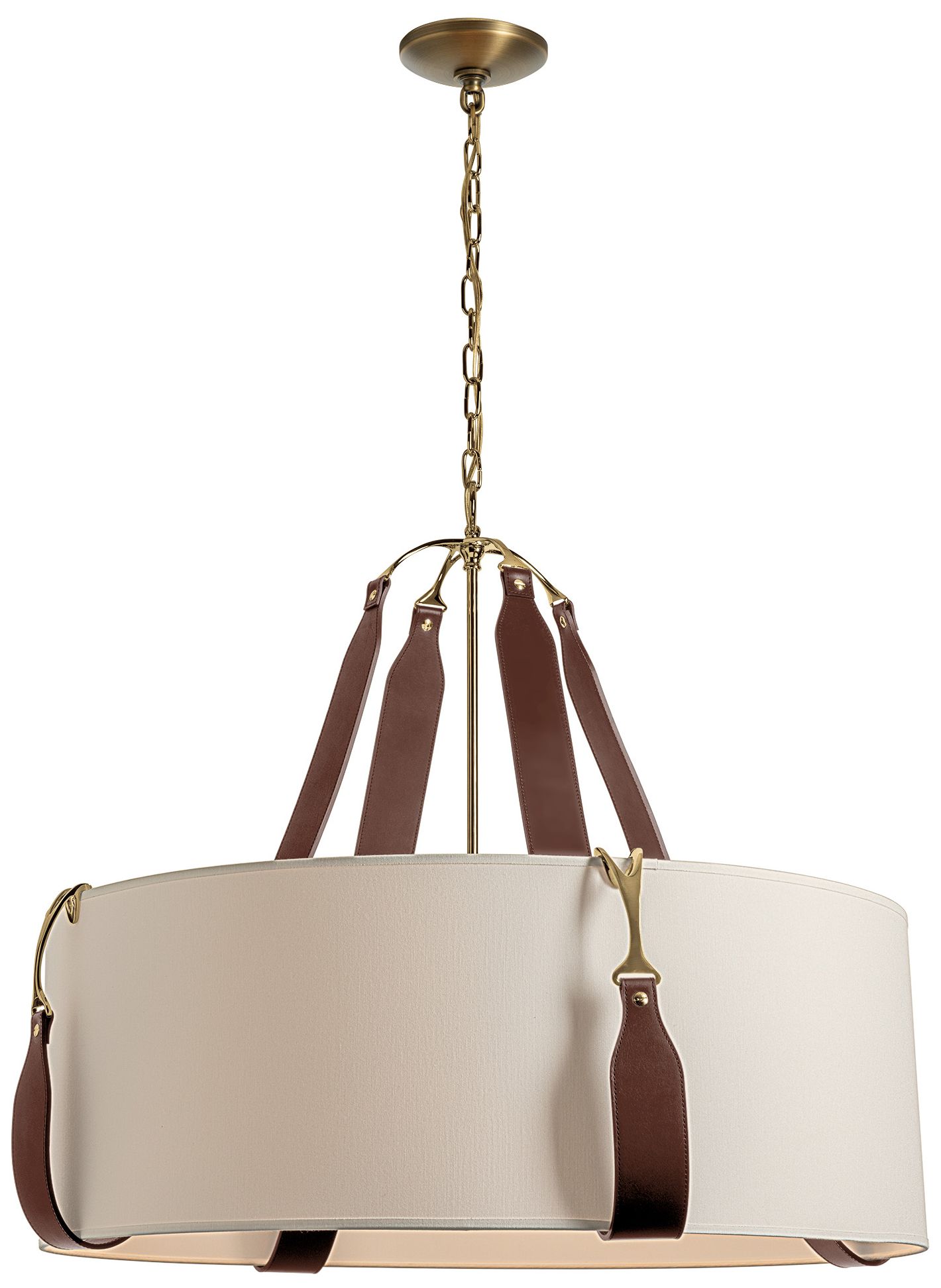 Hubbardton Forge Saratoga 32" Wide Leather and Antique Brass Pendant