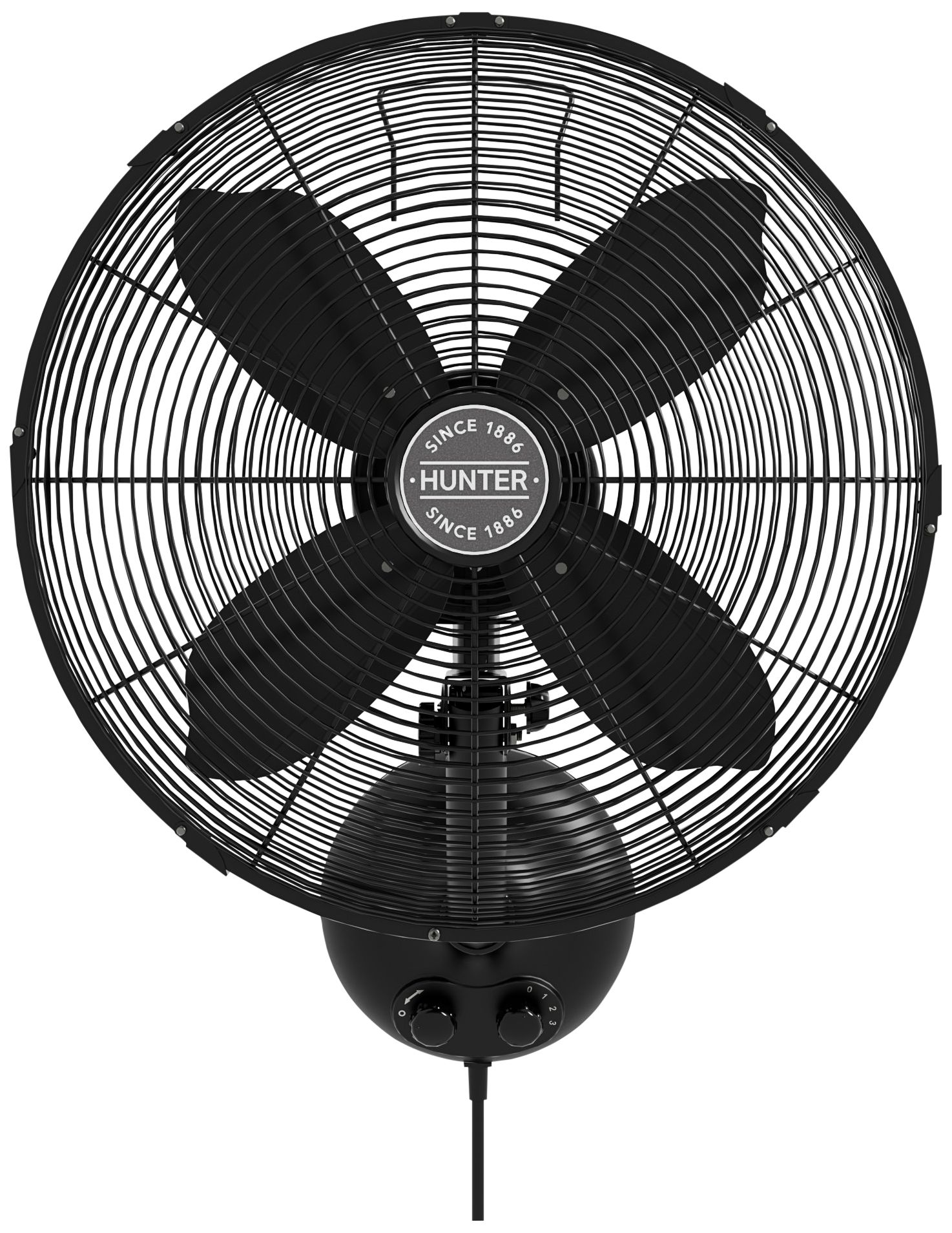 16" Wide Hunter Oscillating Matte Black Wall Mounted Fan