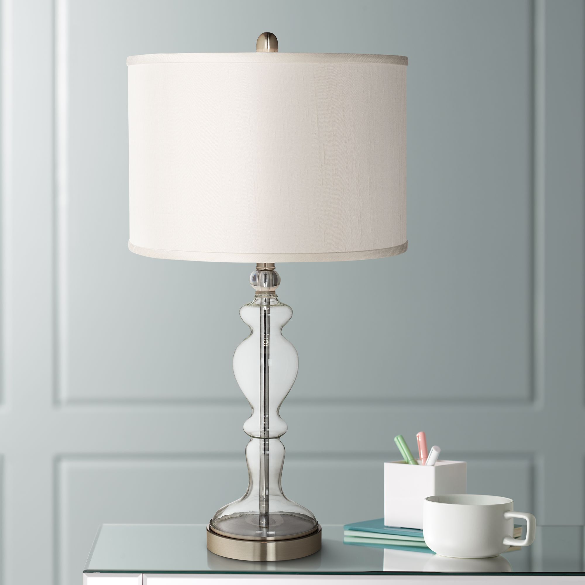 Possini Euro 28" Cream Faux Silk Shade Apothecary Glass Table Lamp