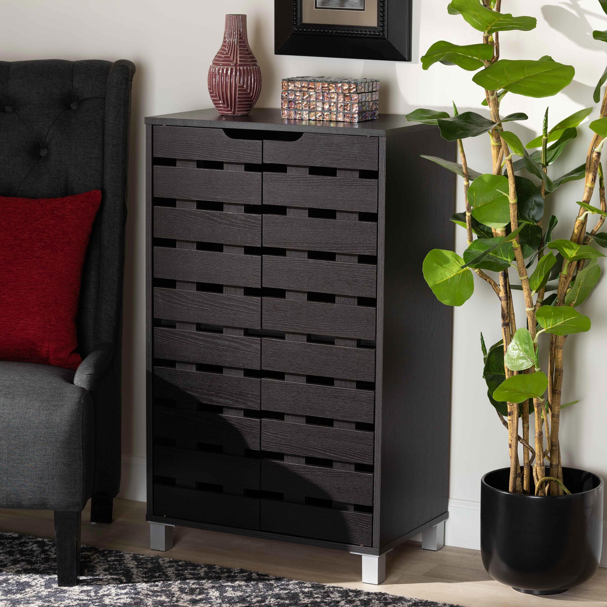 Ernest 23" Wide Dark Brown Wood 2-Door Shoe Storage Cabinet