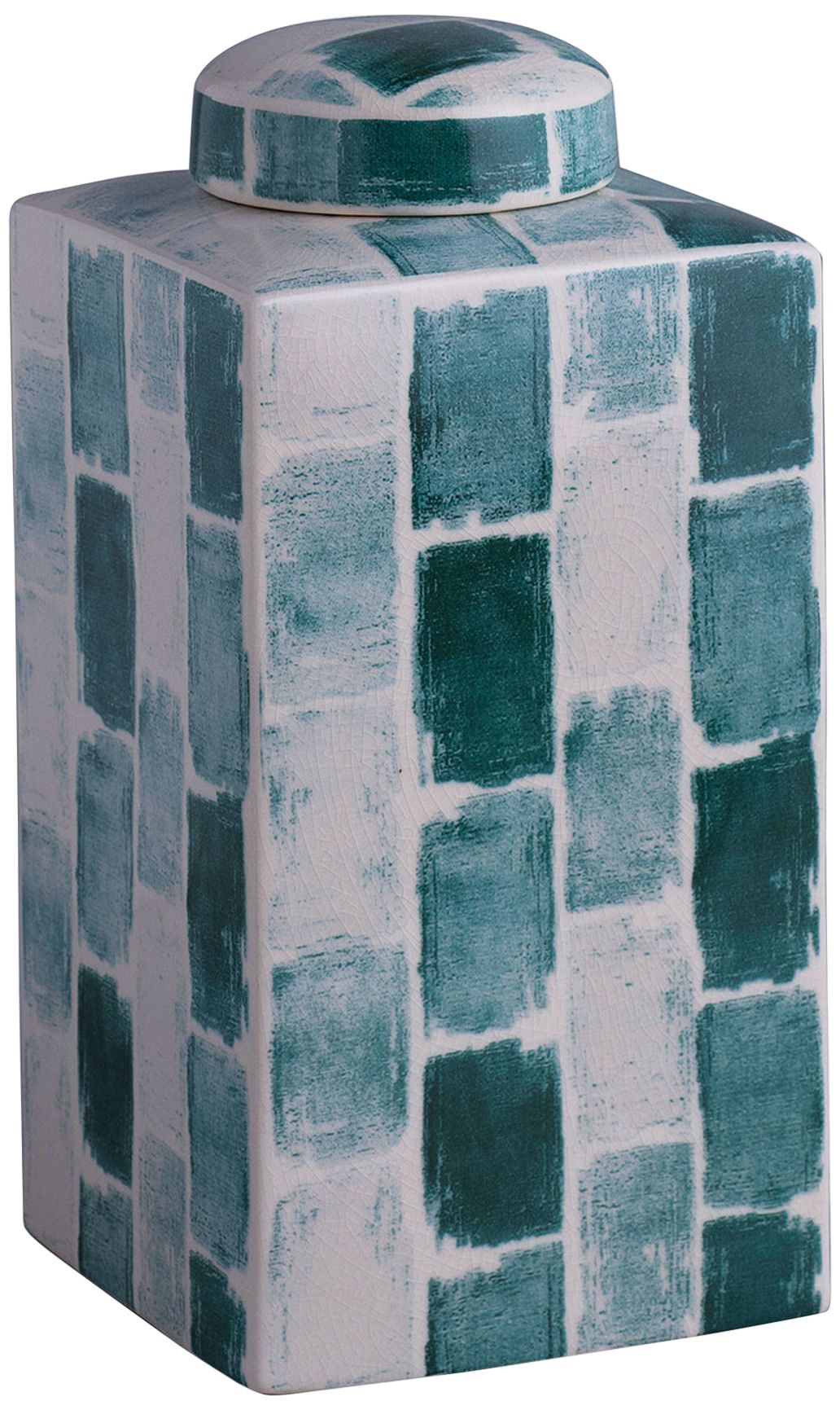 Scalamandre Celadon Tile 16" High Tea Caddy w/ Lift-Off Lid