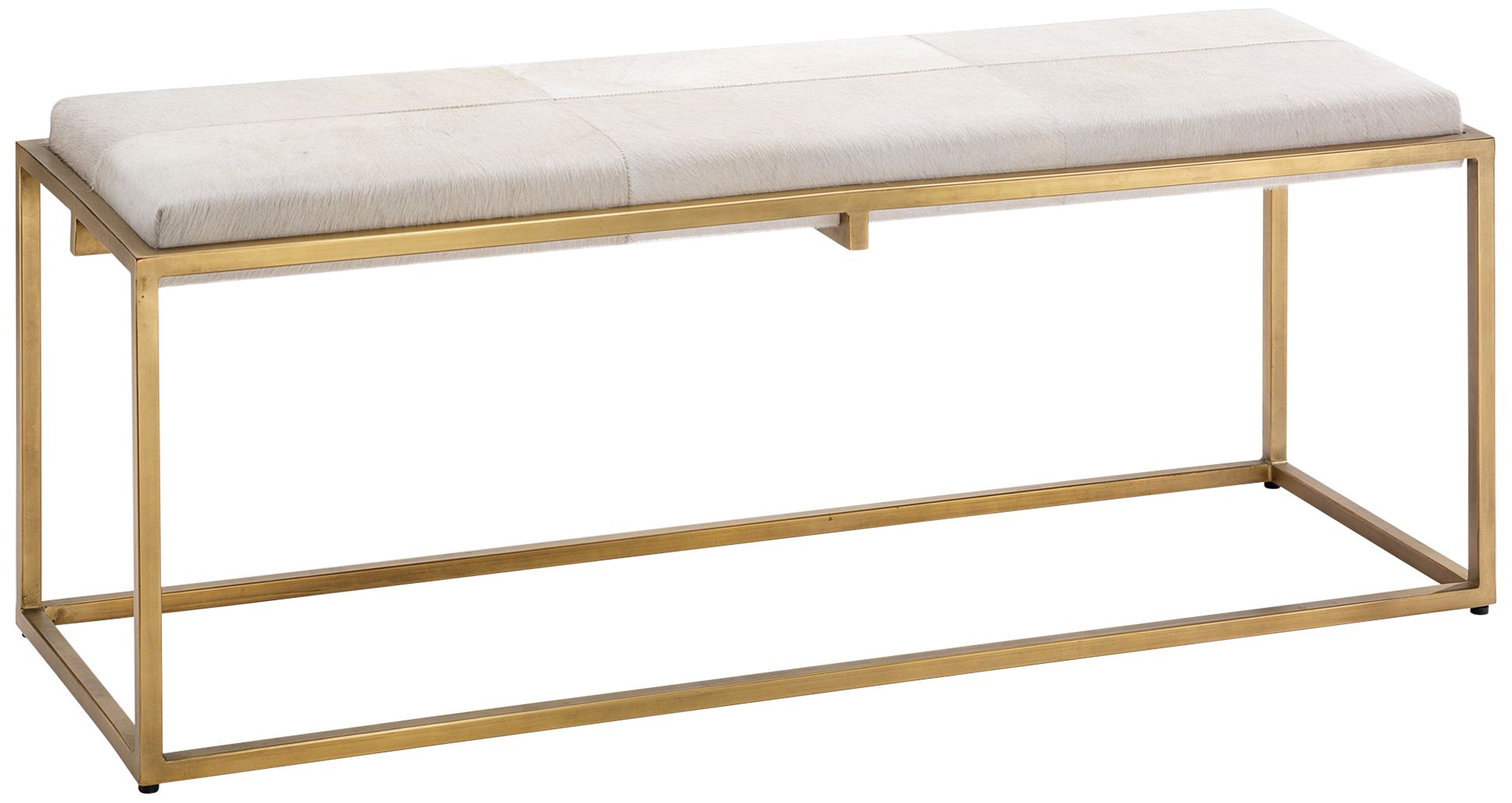 Shelby 51" Wide White Hide and Antique Brass Banquette Bench