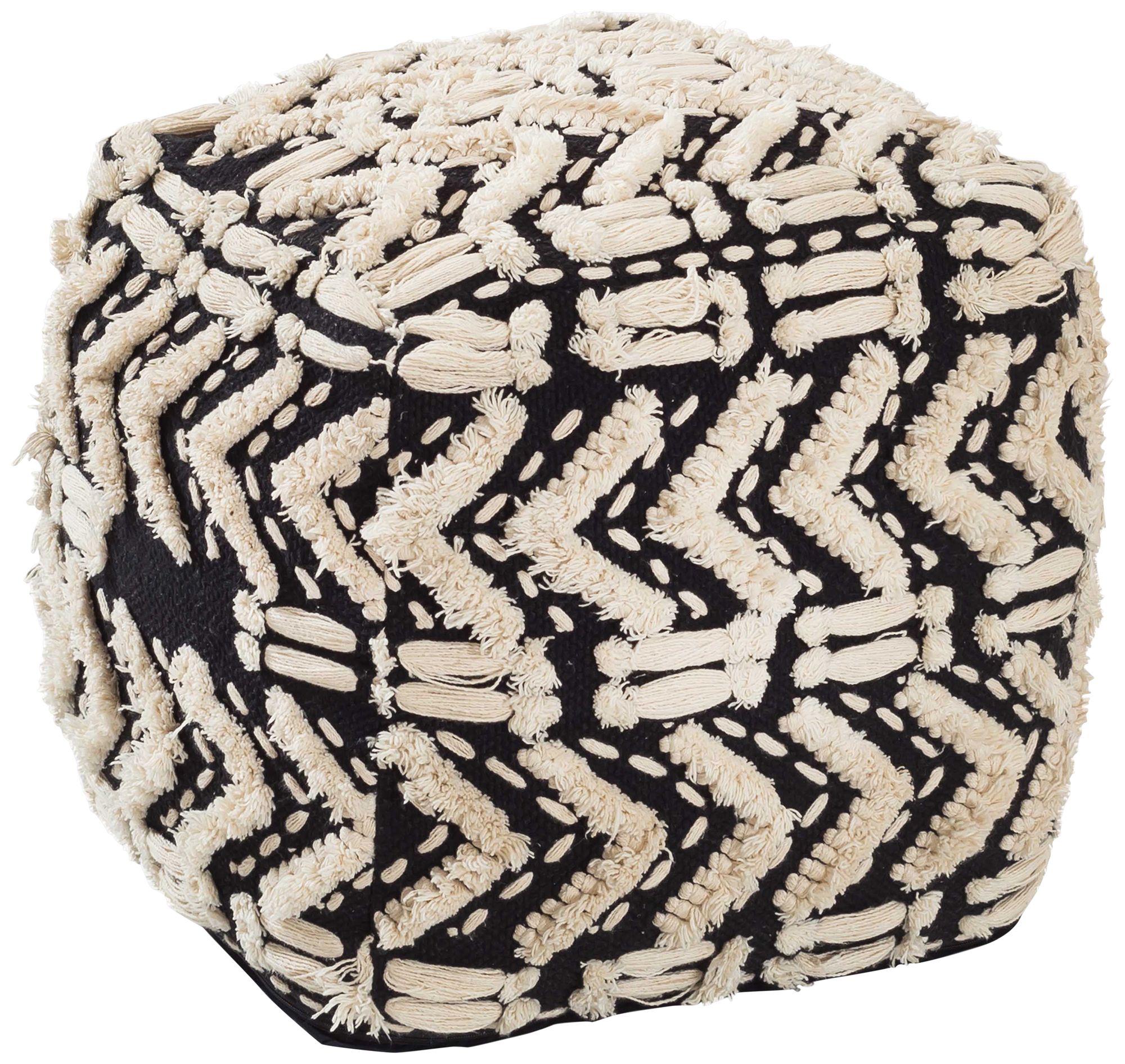 TOV Furniture Mariel 18" Wide Black and Natural Cotton Pouf Ottoman