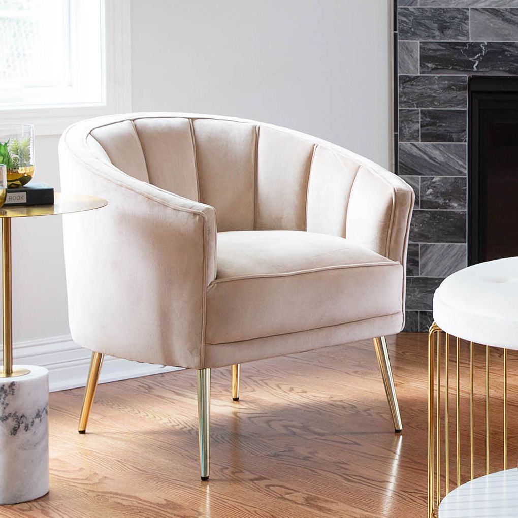 LumiSource Tania 30" Wide Modern Champagne Velvet Tufted Accent Chair