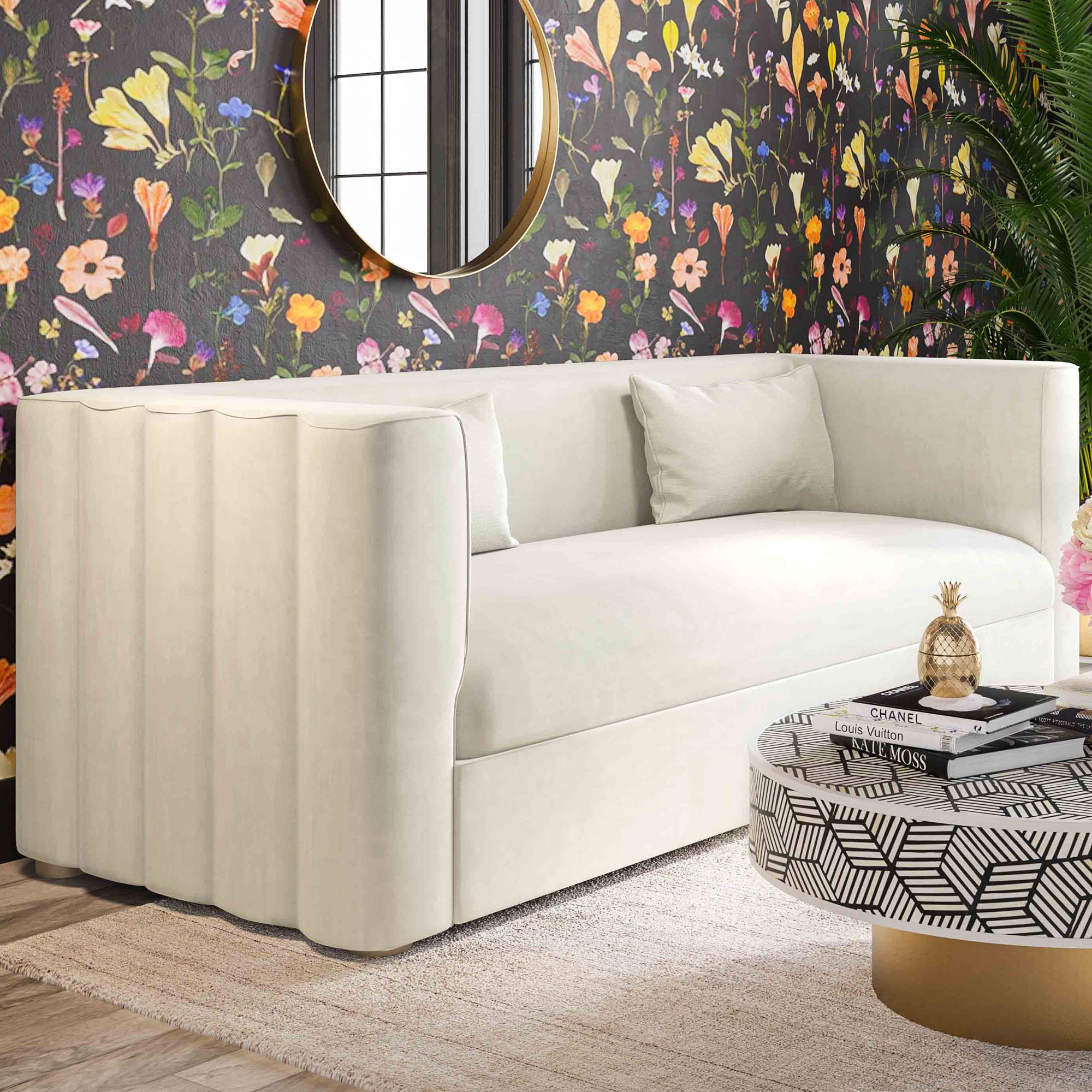 TOV Callie 84 1/4" Wide Modern Cream Velvet Tufted Sofa