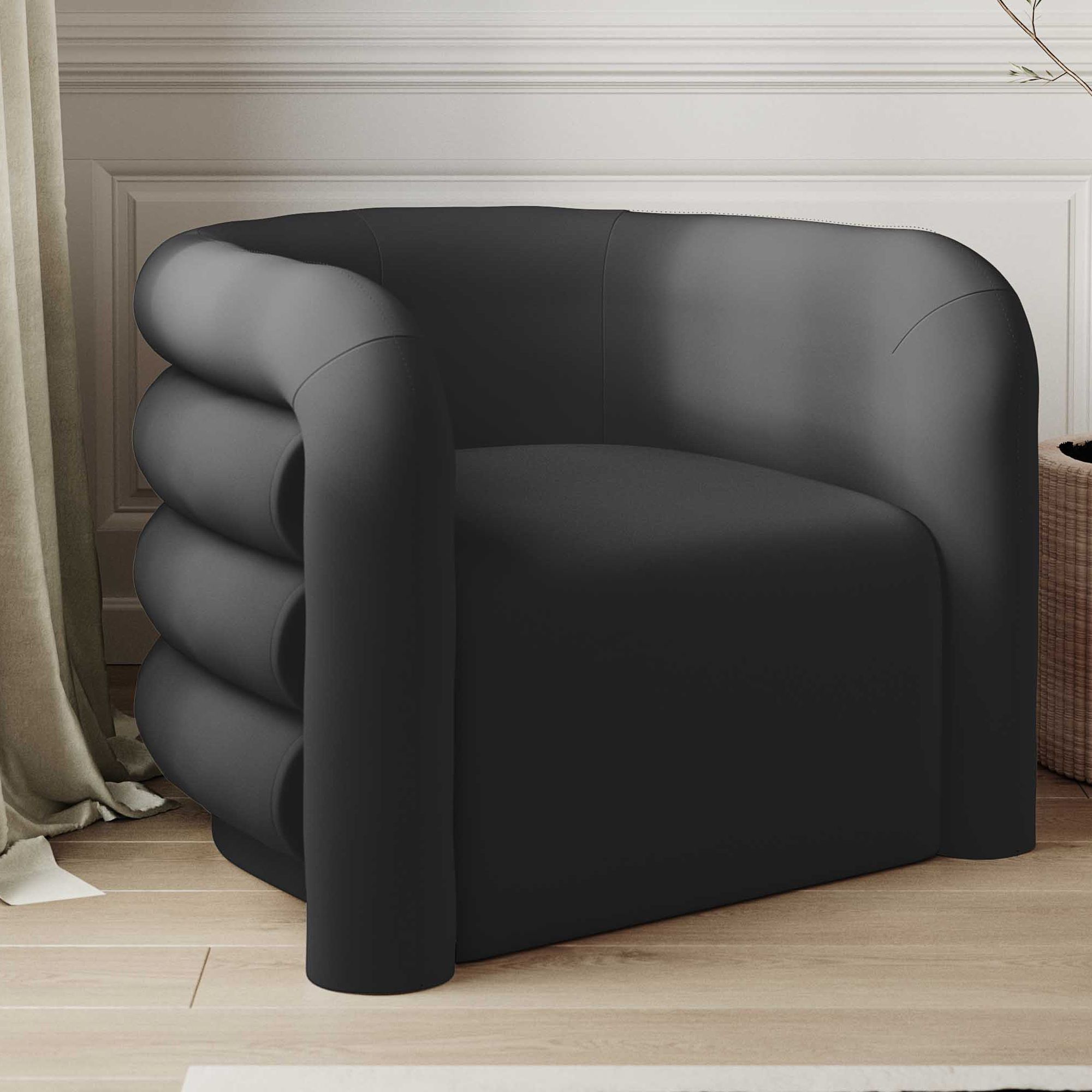 TOV Curves 36 1/4" Black Velvet Channel-Tufted Modern Lounge Chair