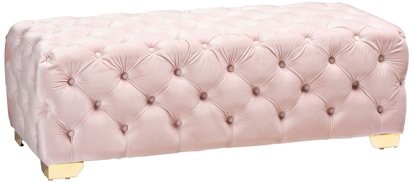 Avara 48" Wide Light Pink Fabric Button Tufted Bench Ottoman