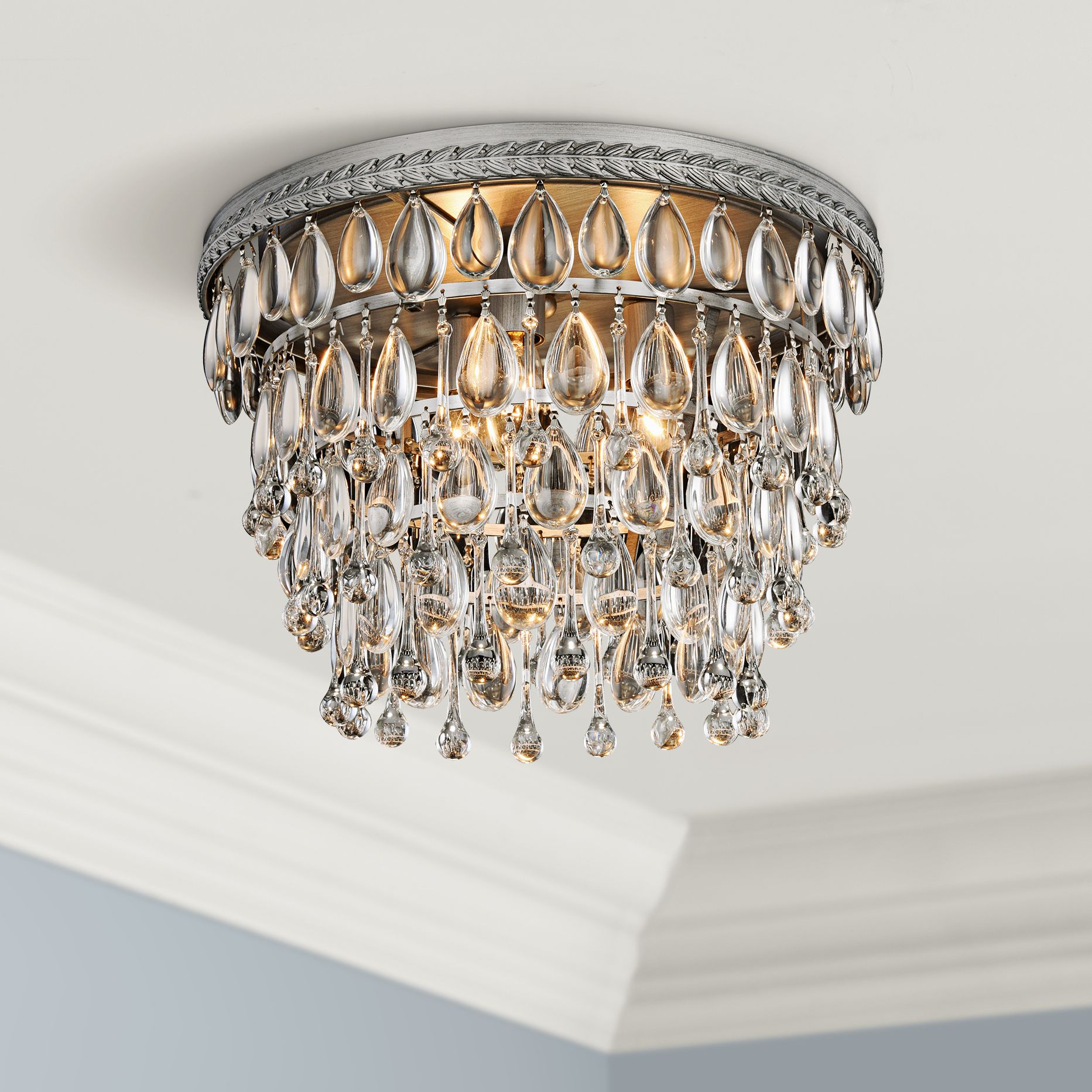 Nordic 15"W 3-Light Antique Silver and Crystal Ceiling Light