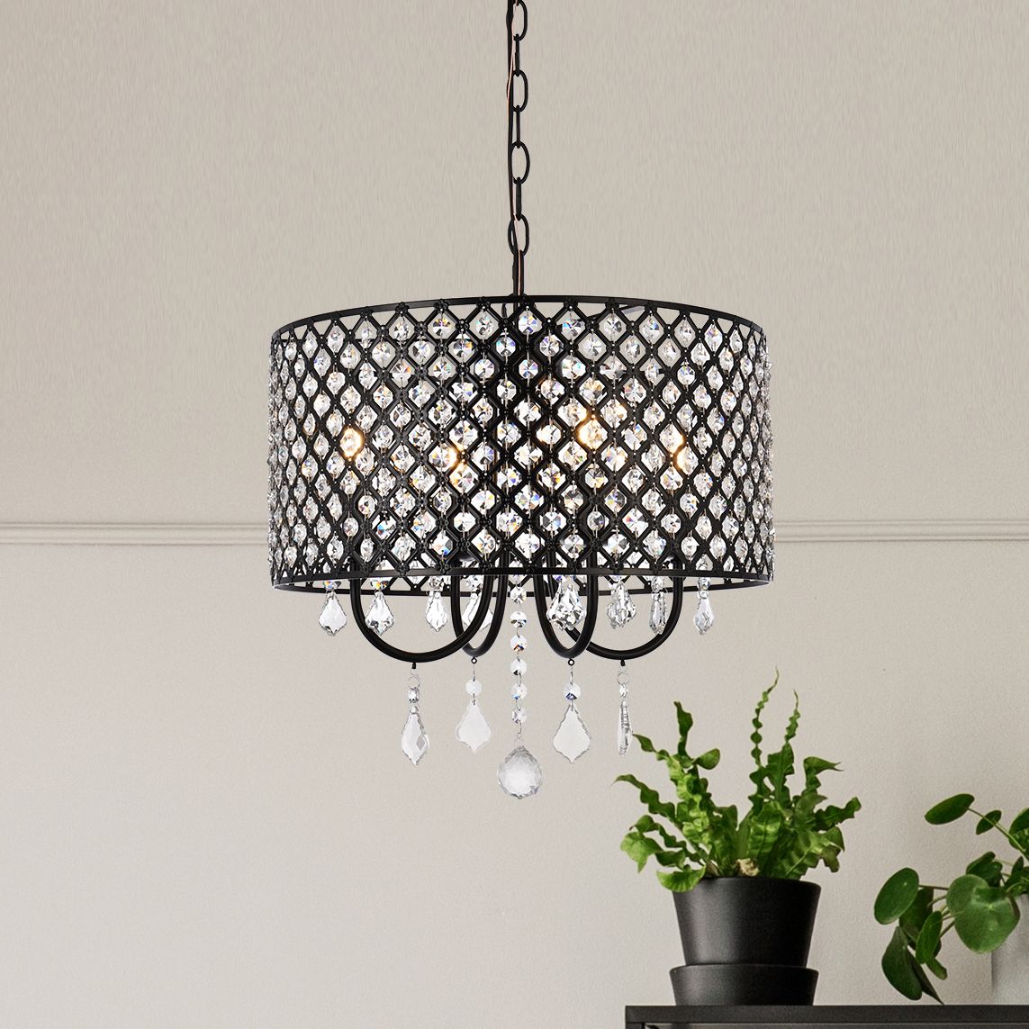 Elegant Lighting Elise 14" Wide Black and Crystal 4-Light Chandelier