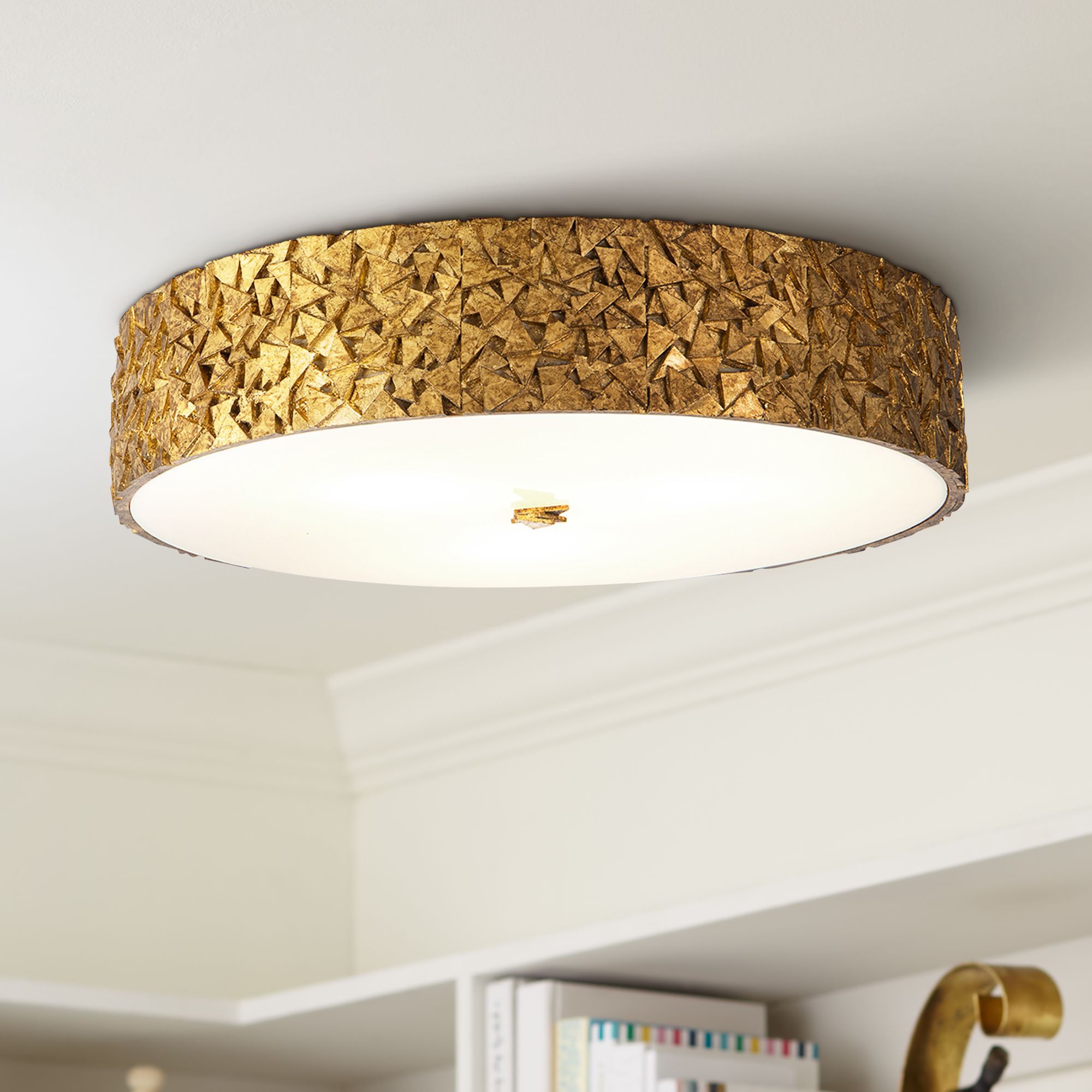 Lucas McKearn Mosaic 20" Wide Antique Gold Leaf Round Ceiling Light
