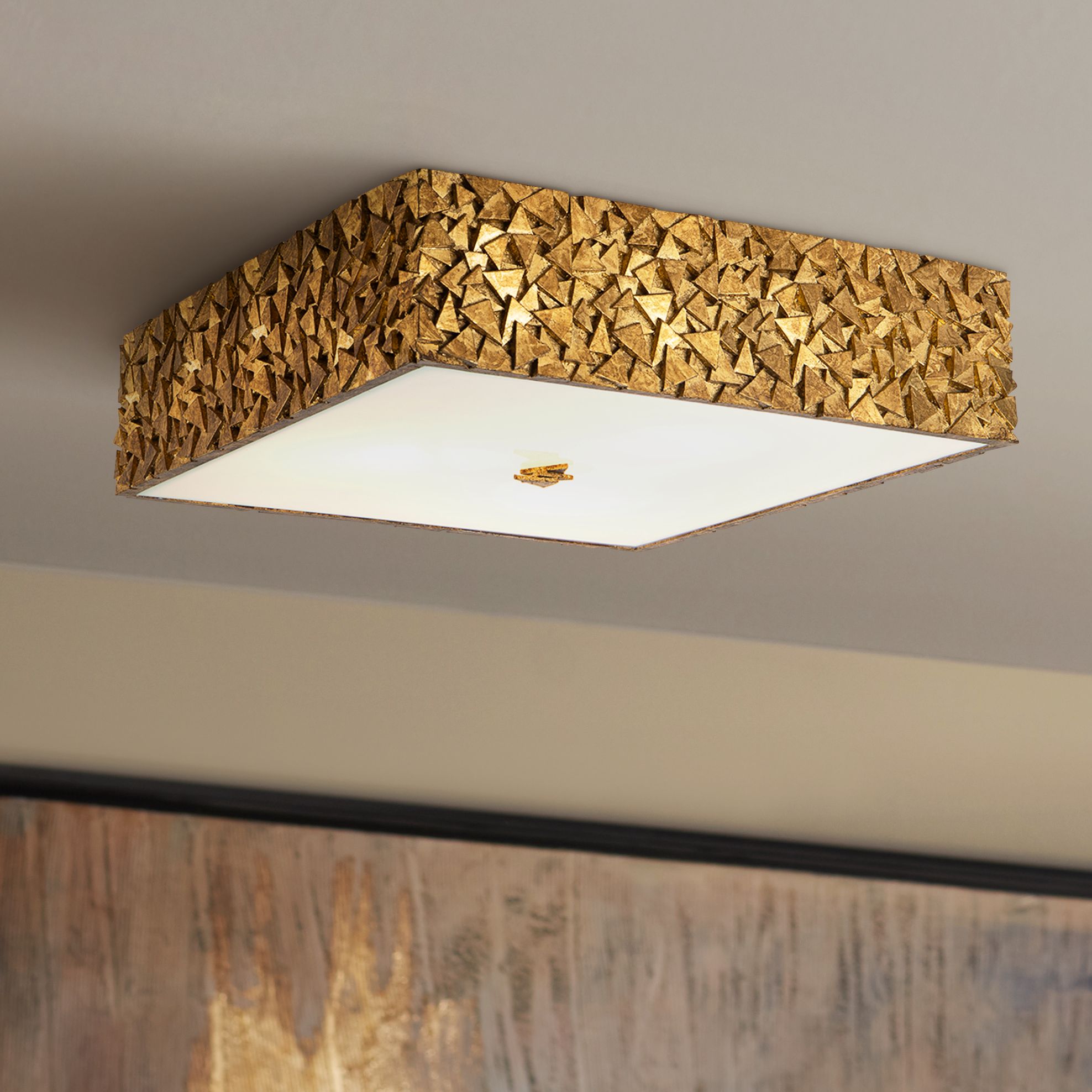 Lucas McKearn Mosaic 16" Wide Antique Gold Leaf Square Ceiling Light