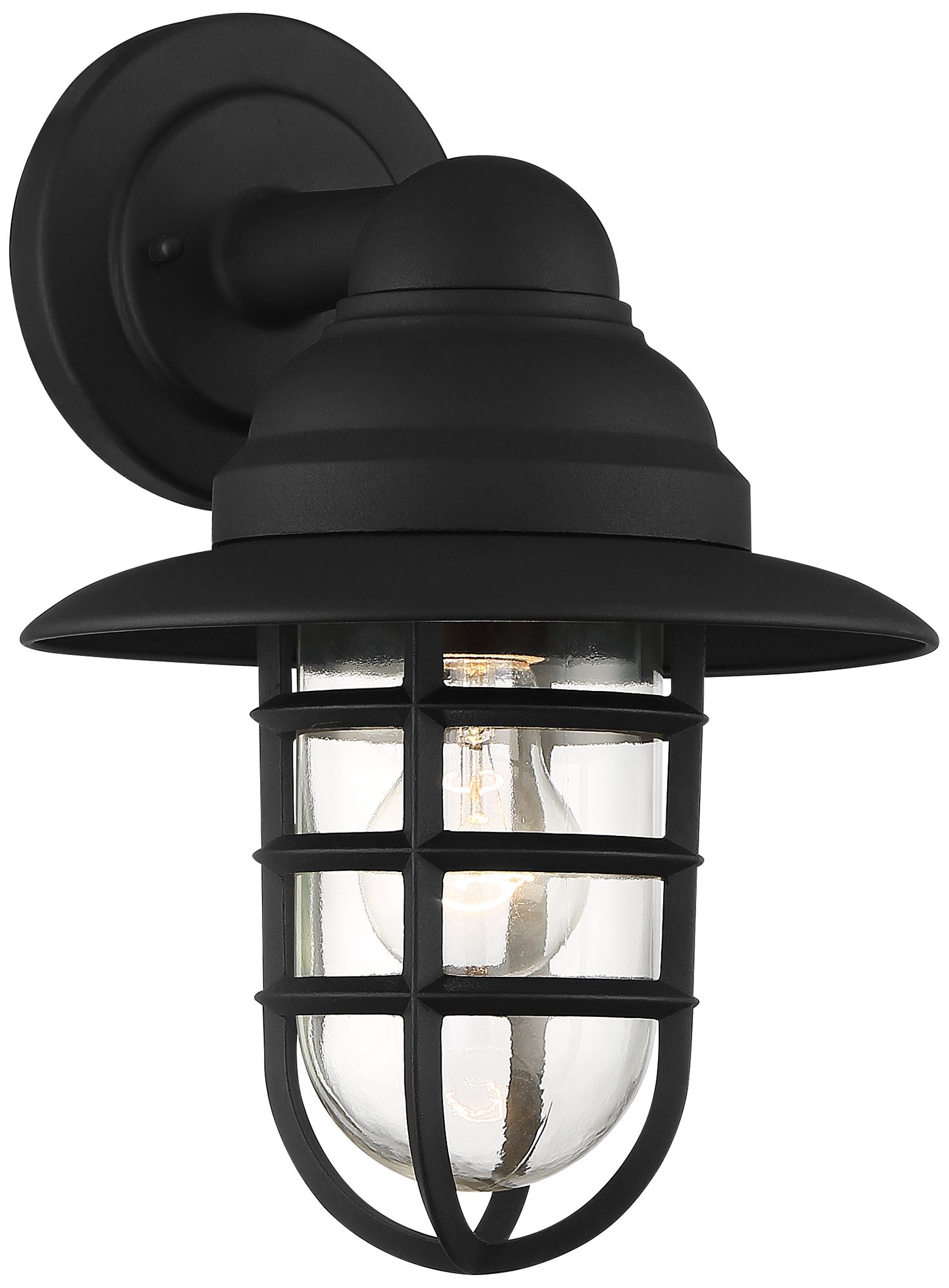 Marlowe 13" High Black Hooded Cage Wall Sconce