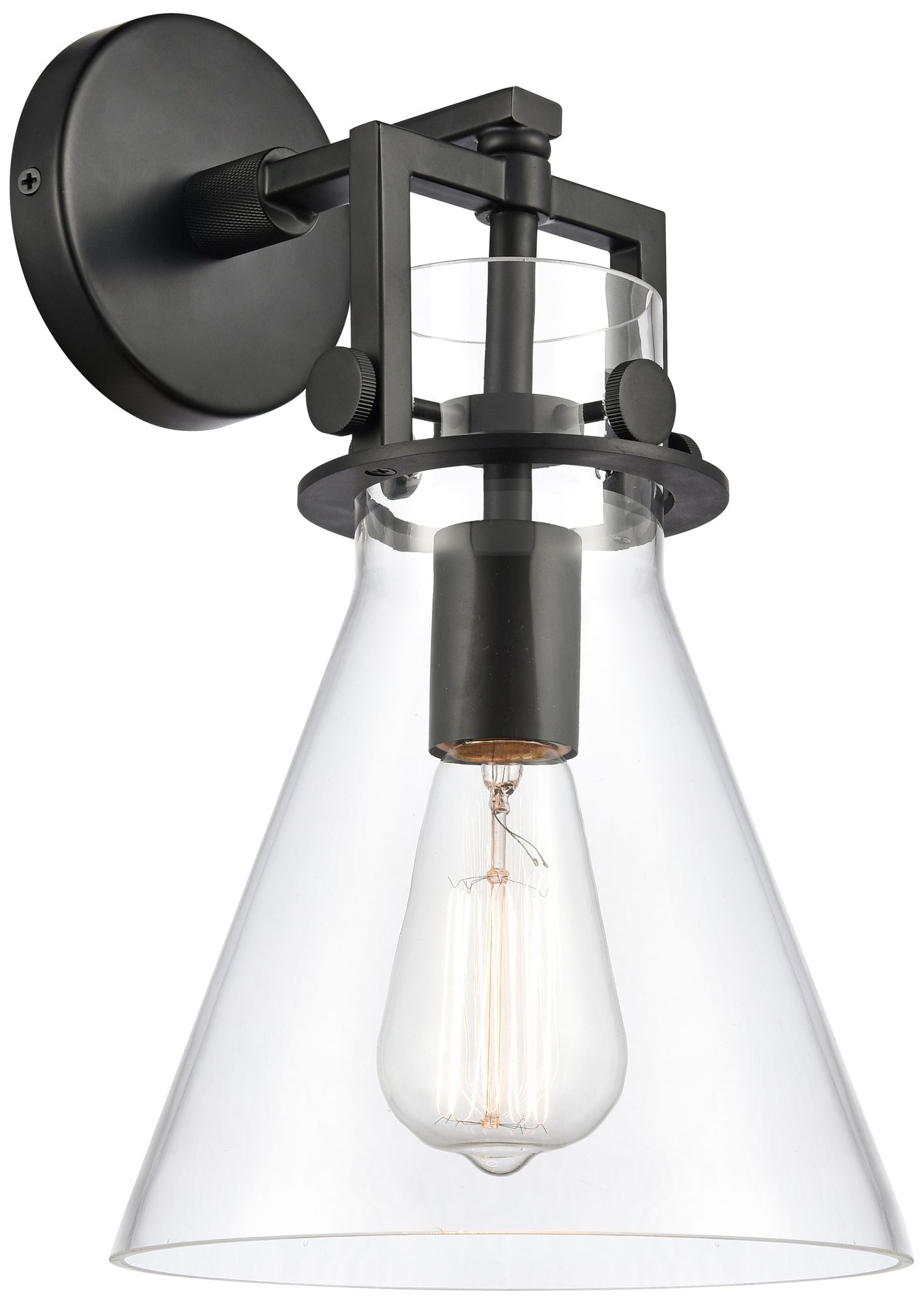 Newton 14" High Matte Black Truncated Cone Glass Wall Sconce