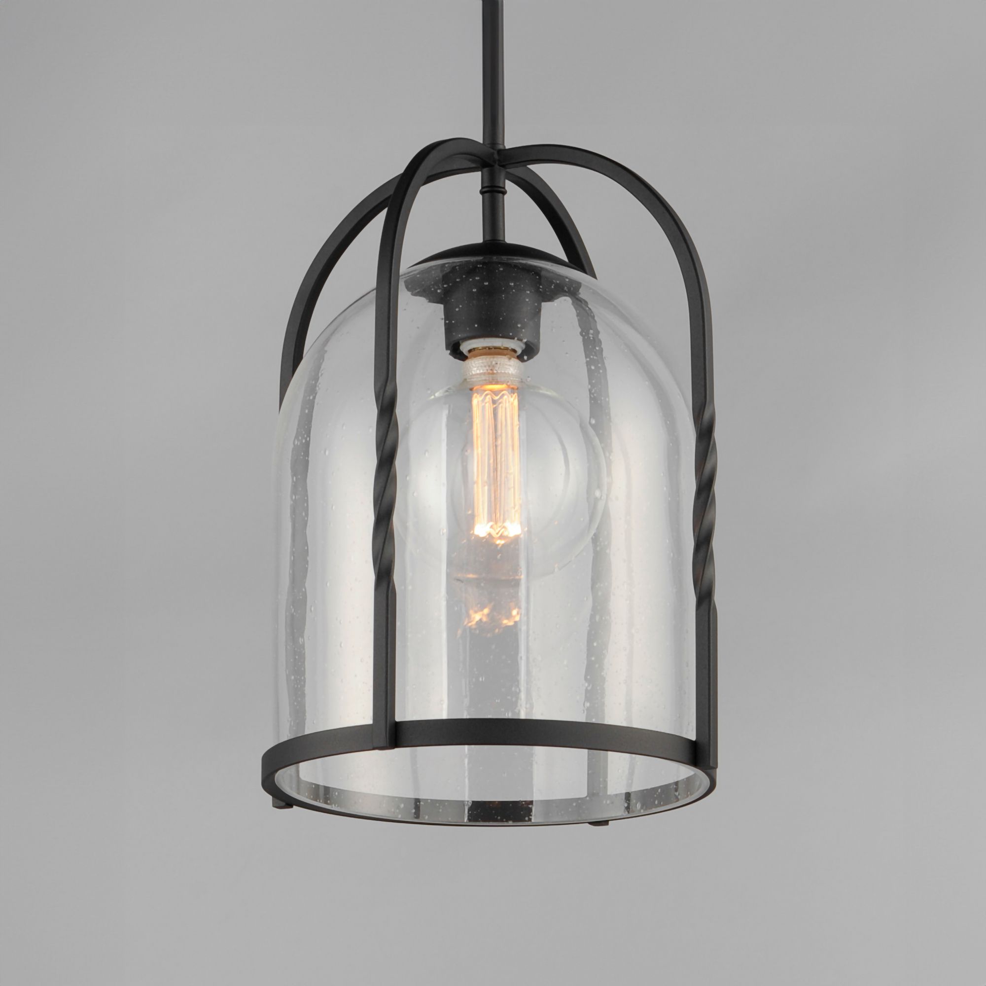Maxim Foundry 11" Wide Black Mini Pendant w/ Seeded Glass