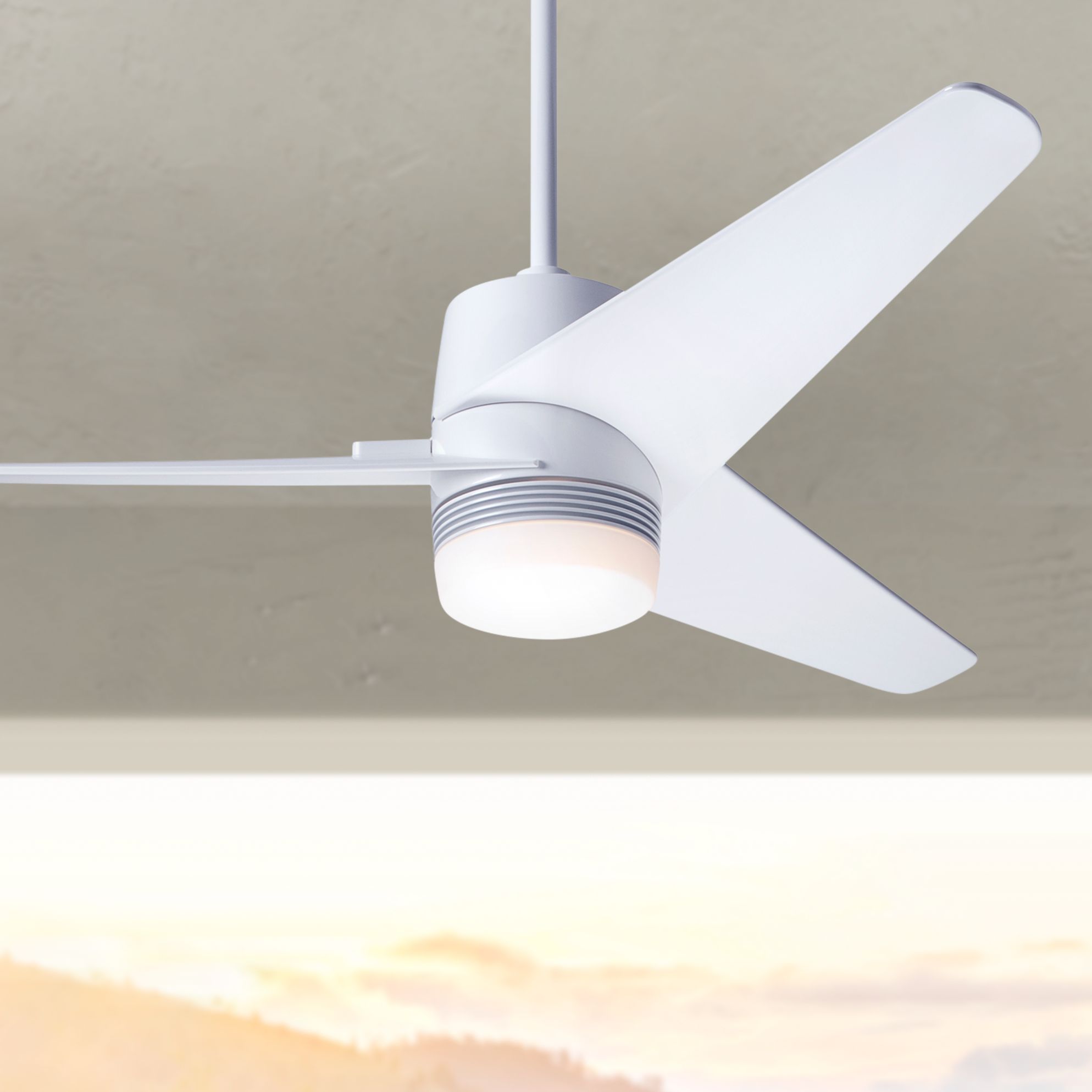 48" Modern Fan Velo DC Gloss White Damp Rated LED Fan with Remote