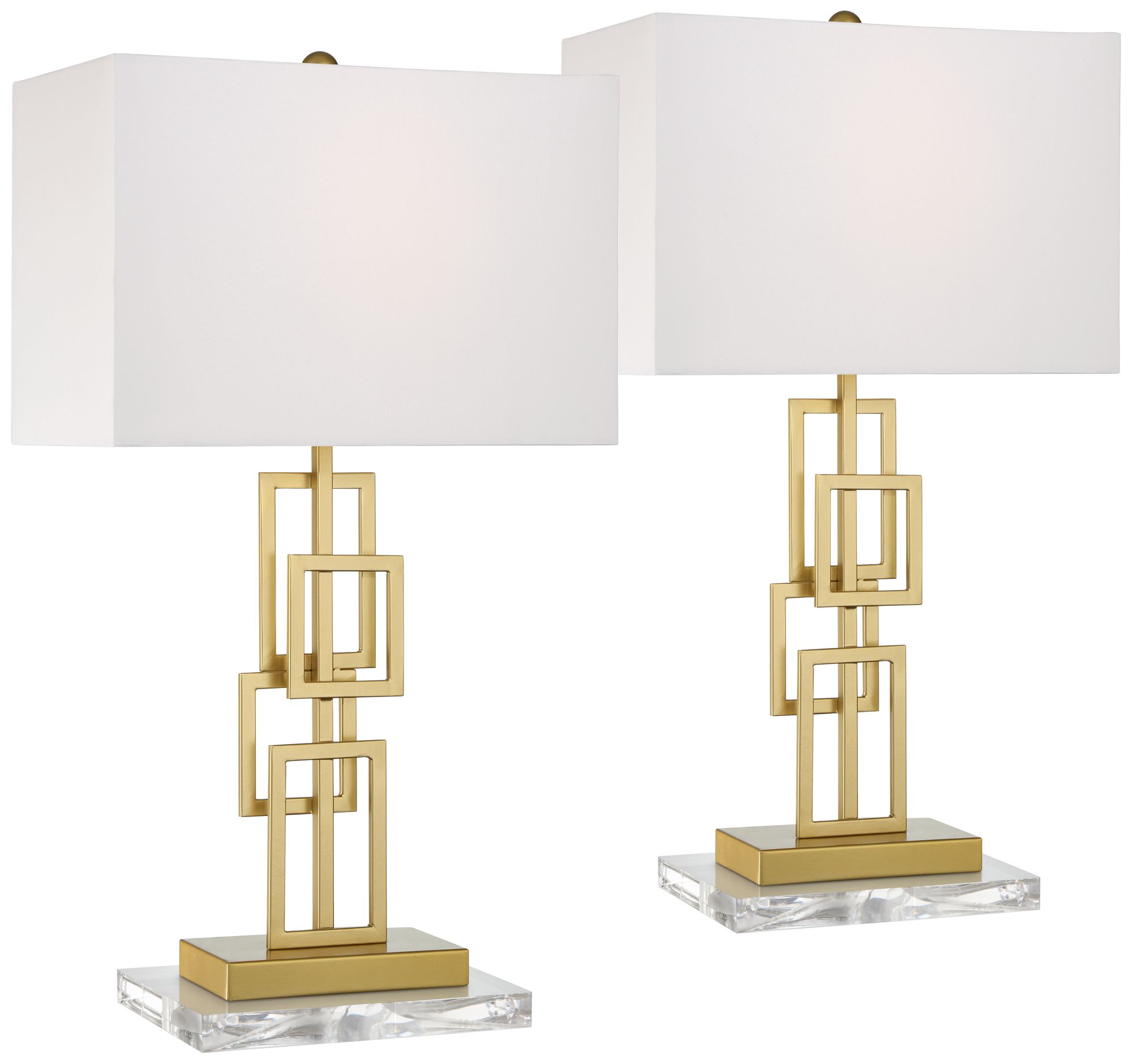 360 Lighting 26" Golden Grid Lamps Set of 2 with Clear Acrylic Risers