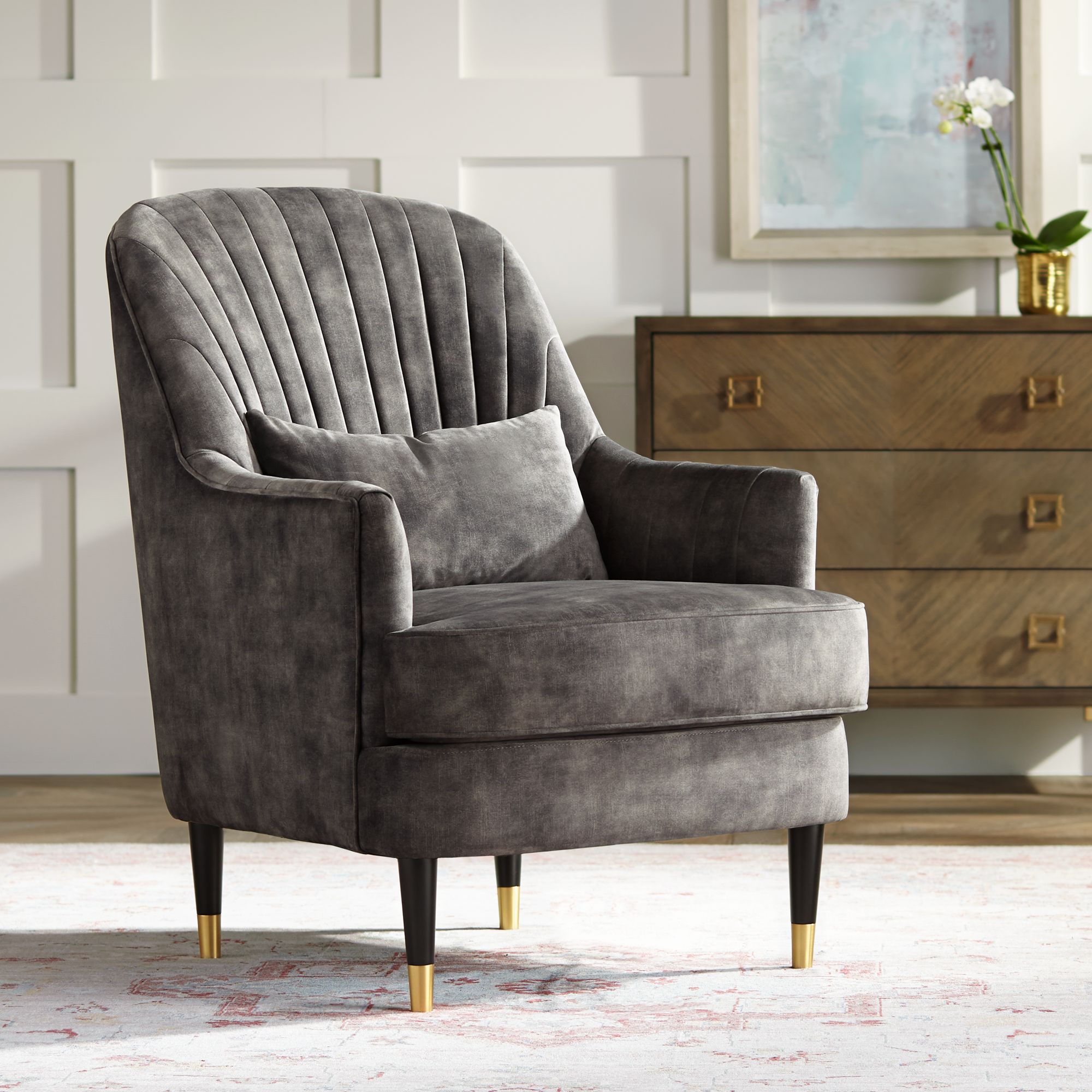55 Downing Street Austen 28" Wide Tufted Charcoal Gray Velvet Armchair