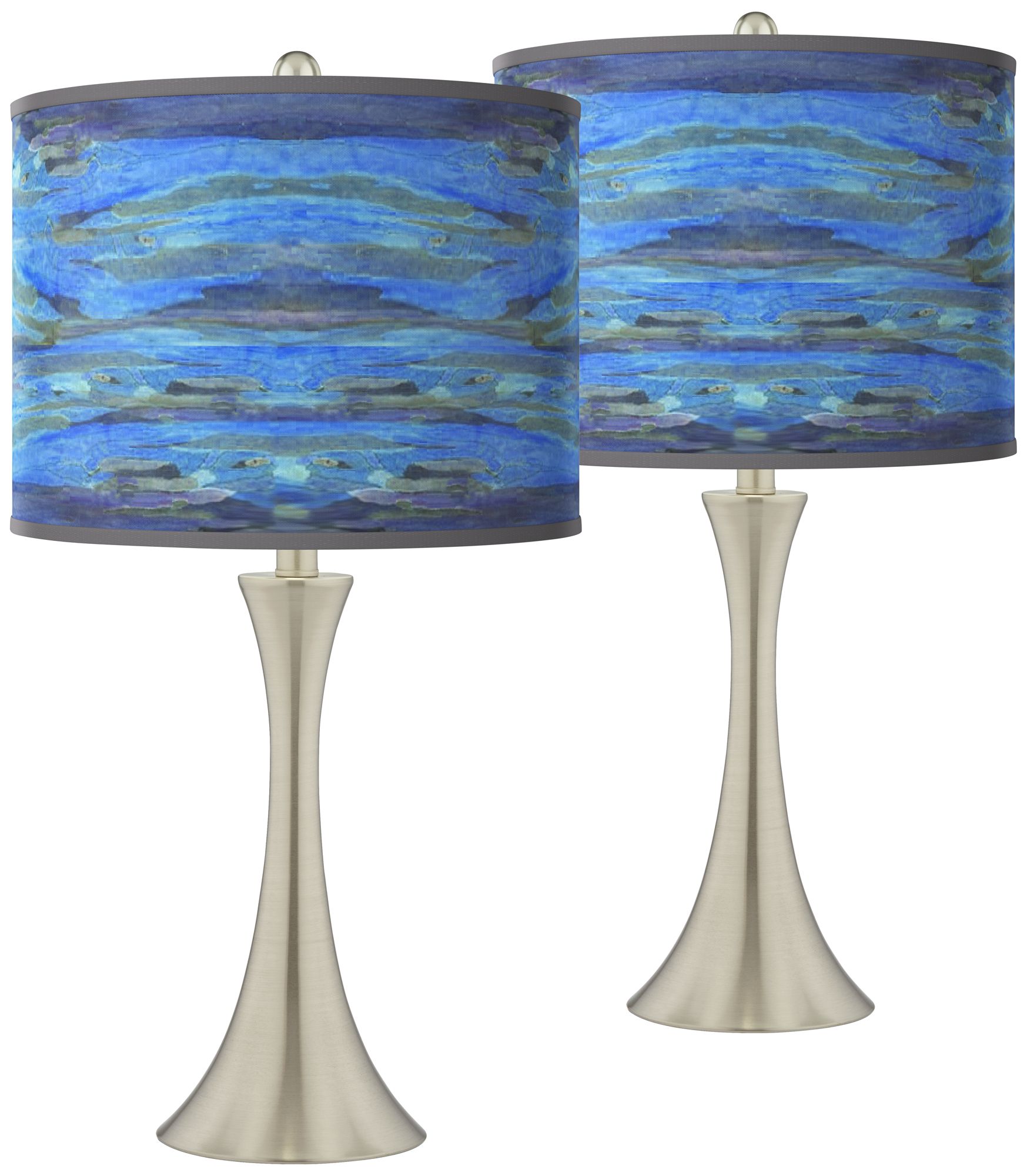 Calathea Gem Vicki Brushed Nickel USB Table Lamps Set of 2