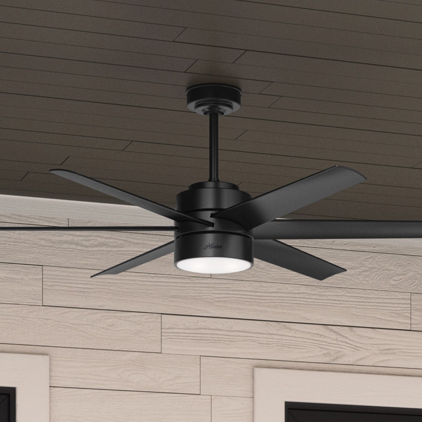60" Hunter Solaria Matte Black Damp Rated Fan with Wall Control