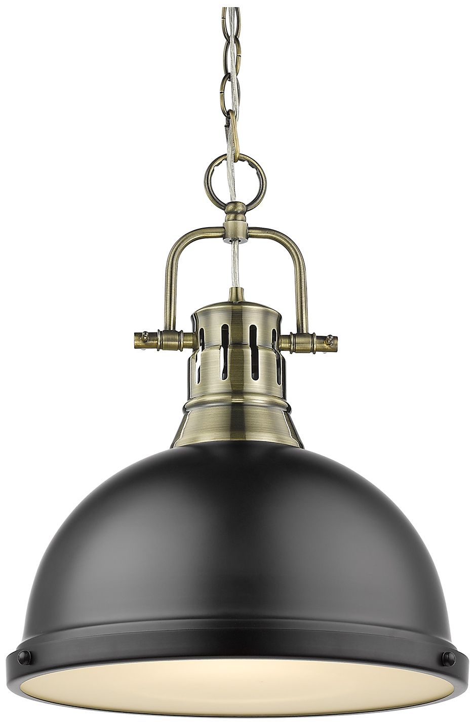 Duncan 14"W Aged Brass Chain Pendant Light with Black Shade
