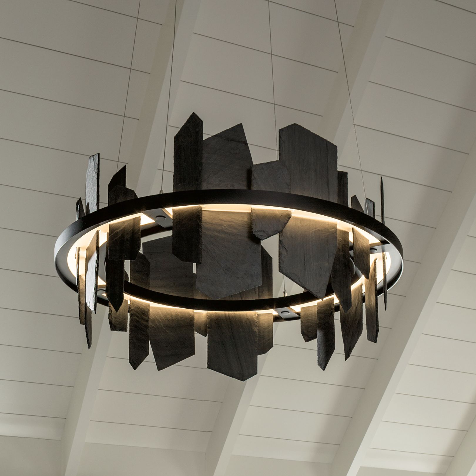 Hubbardton Forge Ardesia 38" Black and Slate LED Ring Chandelier