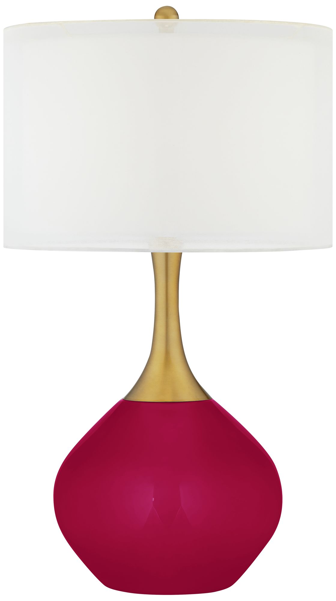 Color Plus Nickki Brass 30 1/2" French Burgundy Red Modern Table Lamp