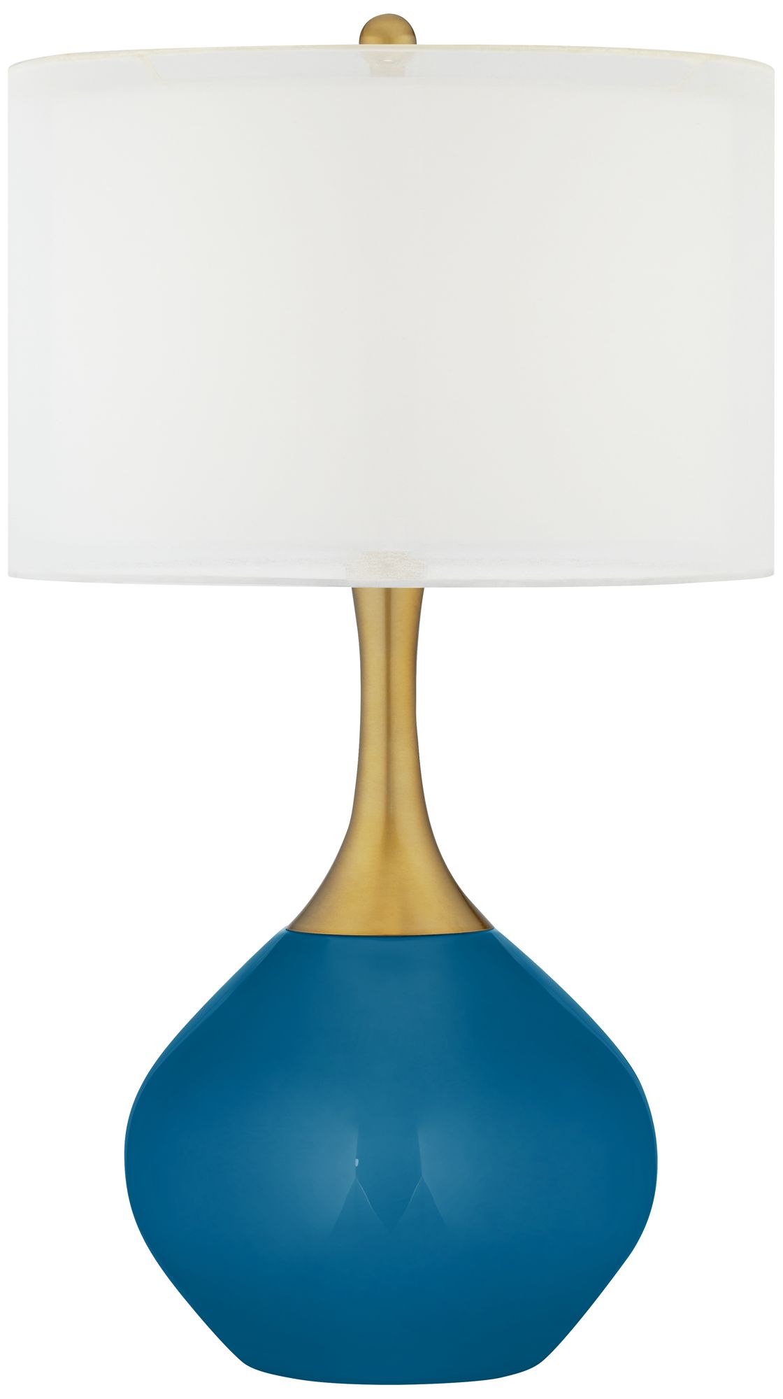Color Plus Nickki Brass 30 1/2" High Hyper Blue Modern Table Lamp