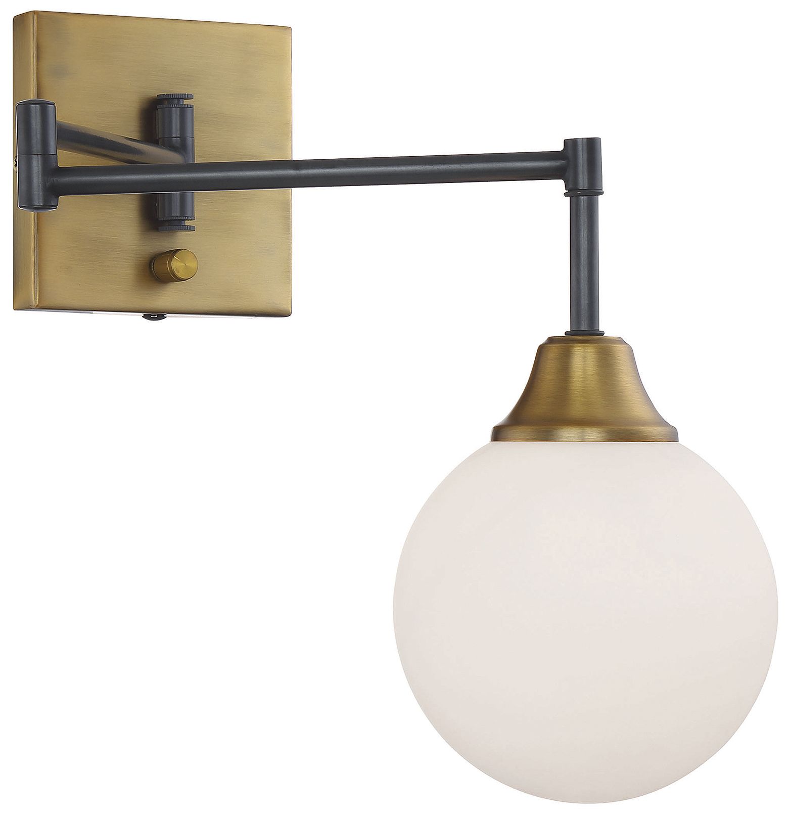 Everley 6"H Vintage Brass Wall Sconce with Opal White Shade