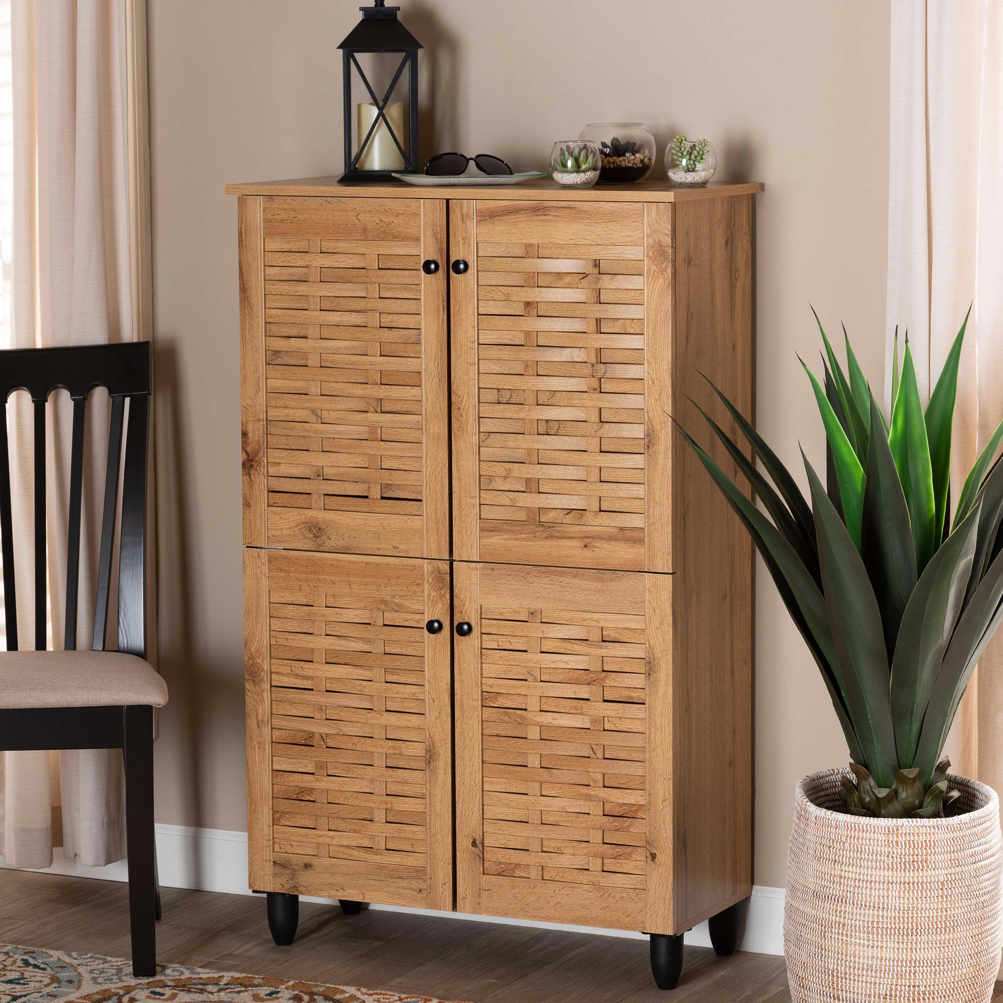 Winda 30" Wide Oak Brown Wood 4-Door Shoe Storage Cabinet