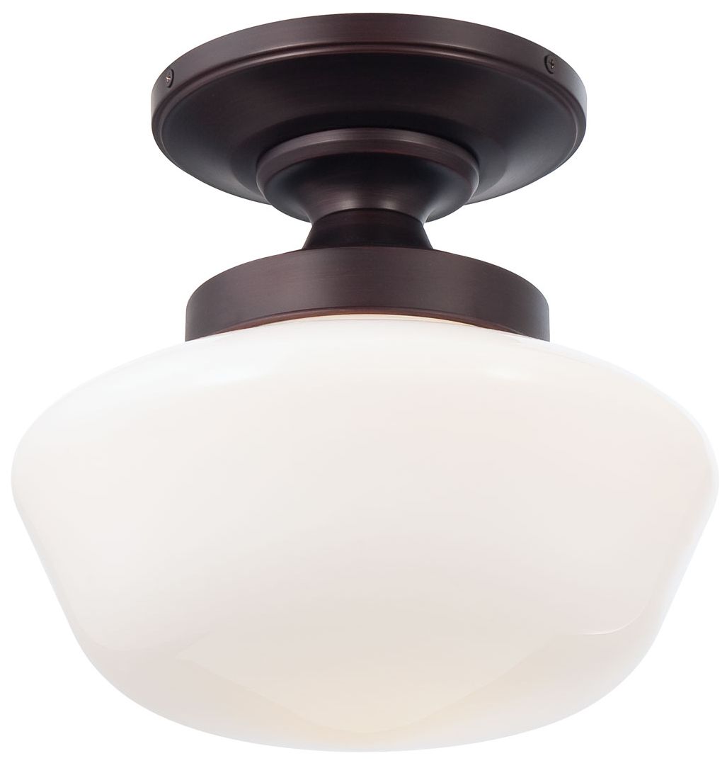Minka Schoolhouse 12" Wide Brushed Bronze Opal Glass Ceiling Light