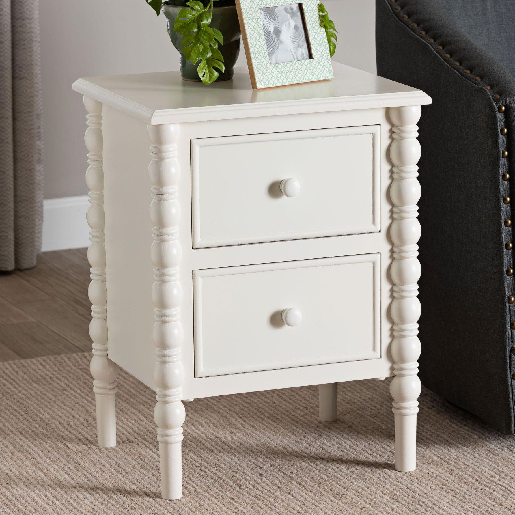 Malinda 17 3/4" Wide Classic White Wood 2-Drawer End Table