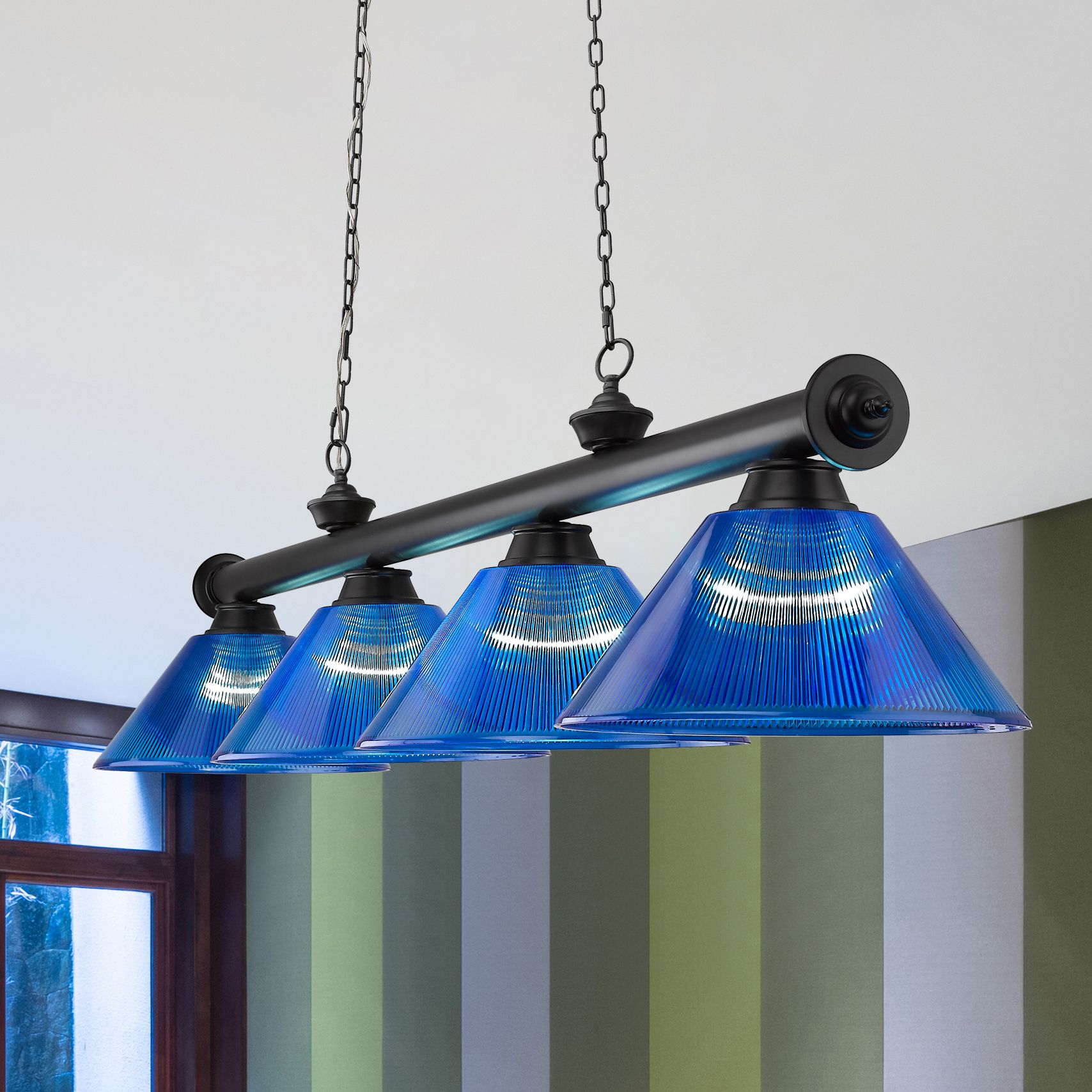 Cordon 81 1/4" Wide Black and Blue 4-Light Billiard Pendant