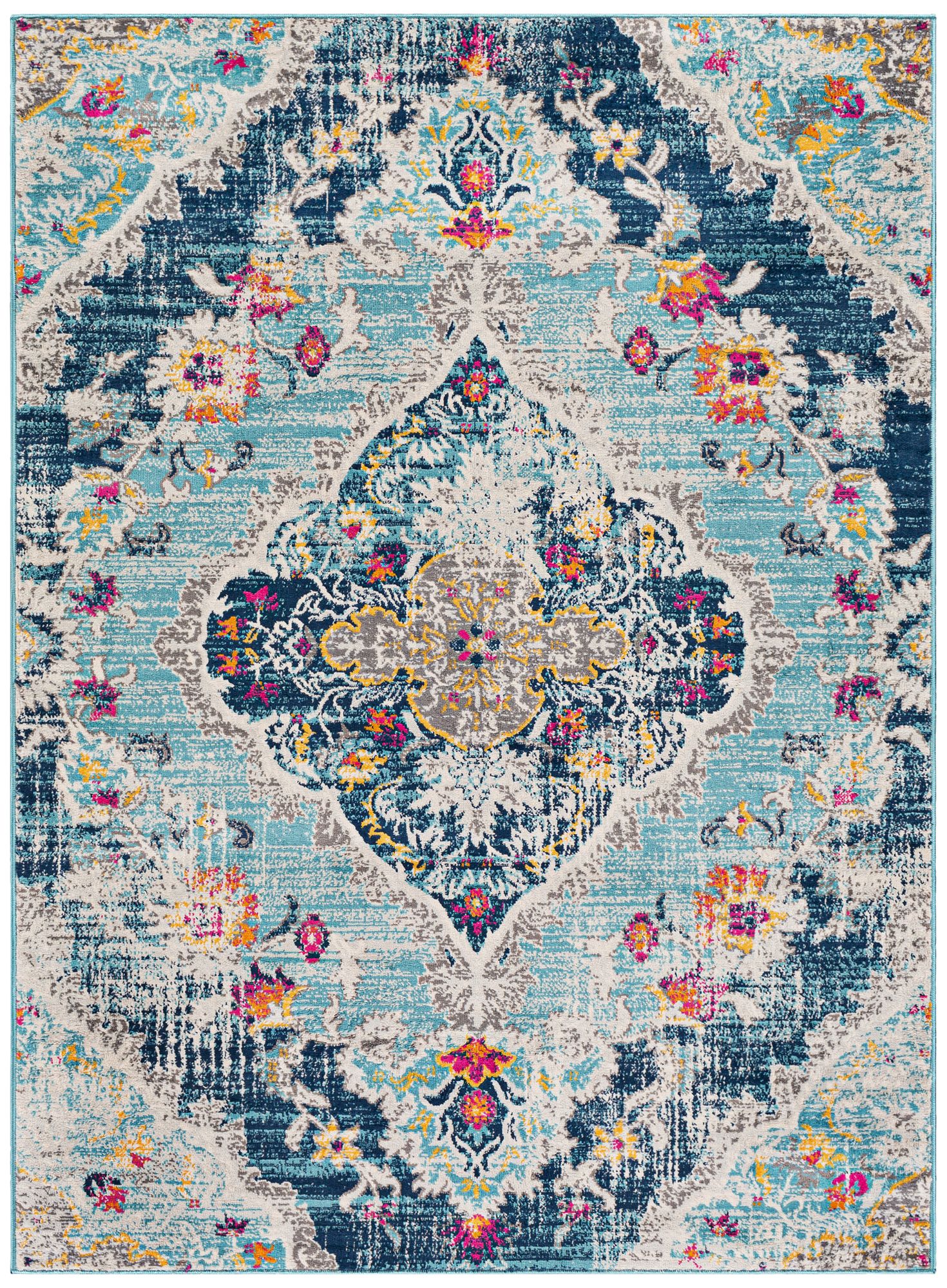 Floransa FSA-2300 5'3"x7'1" Light Blue and Navy Area Rug