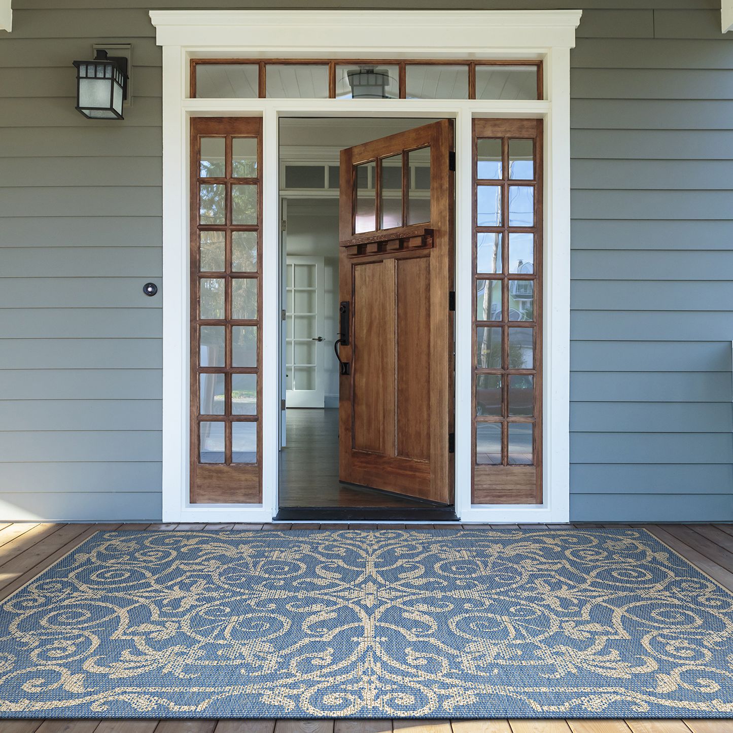 Eagean EAG-2307 4'3"x5'11" Aqua and Gray Outdoor Area Rug