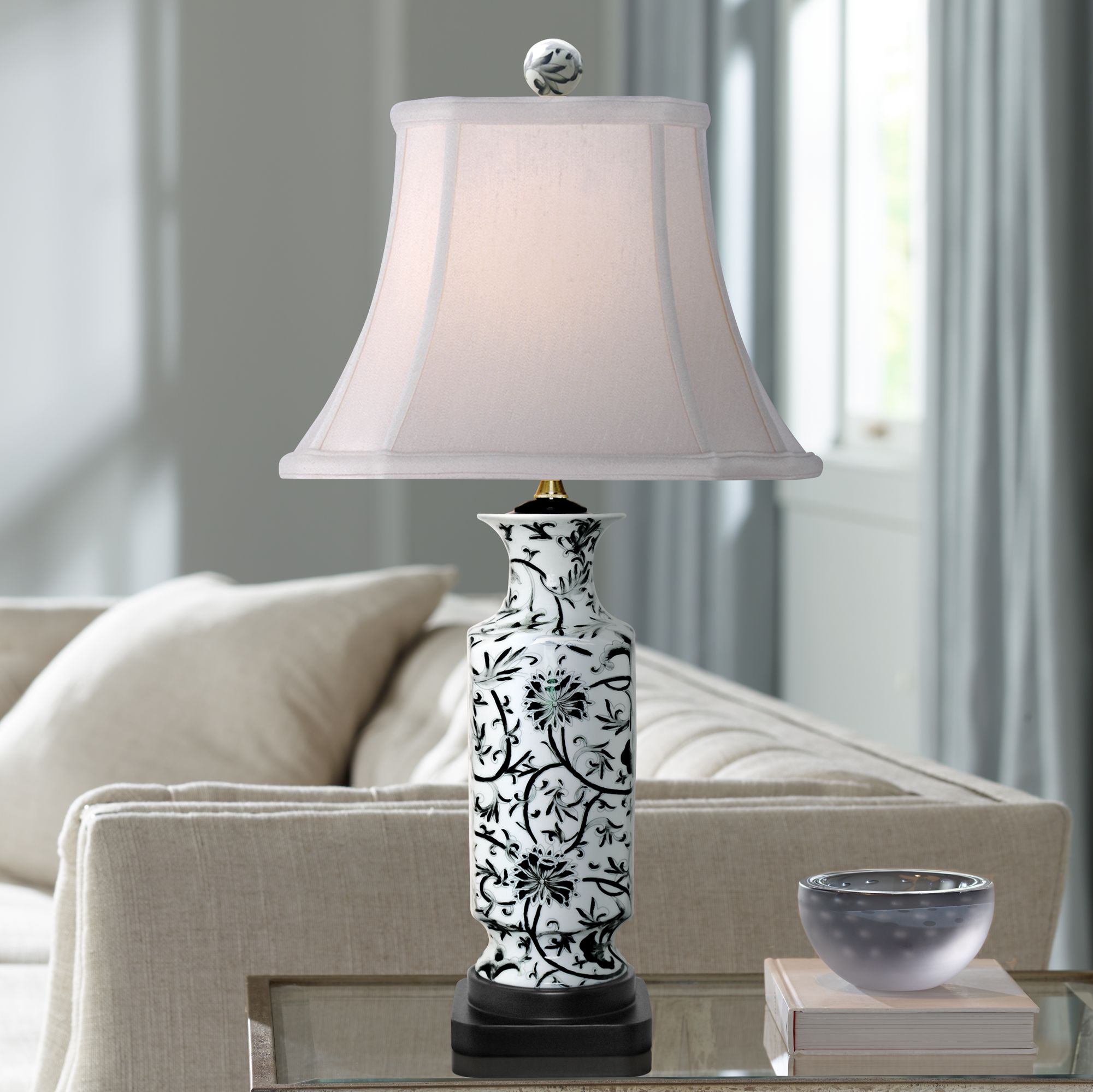 Black And White Floral 24" Ceramic Vase Table Lamp