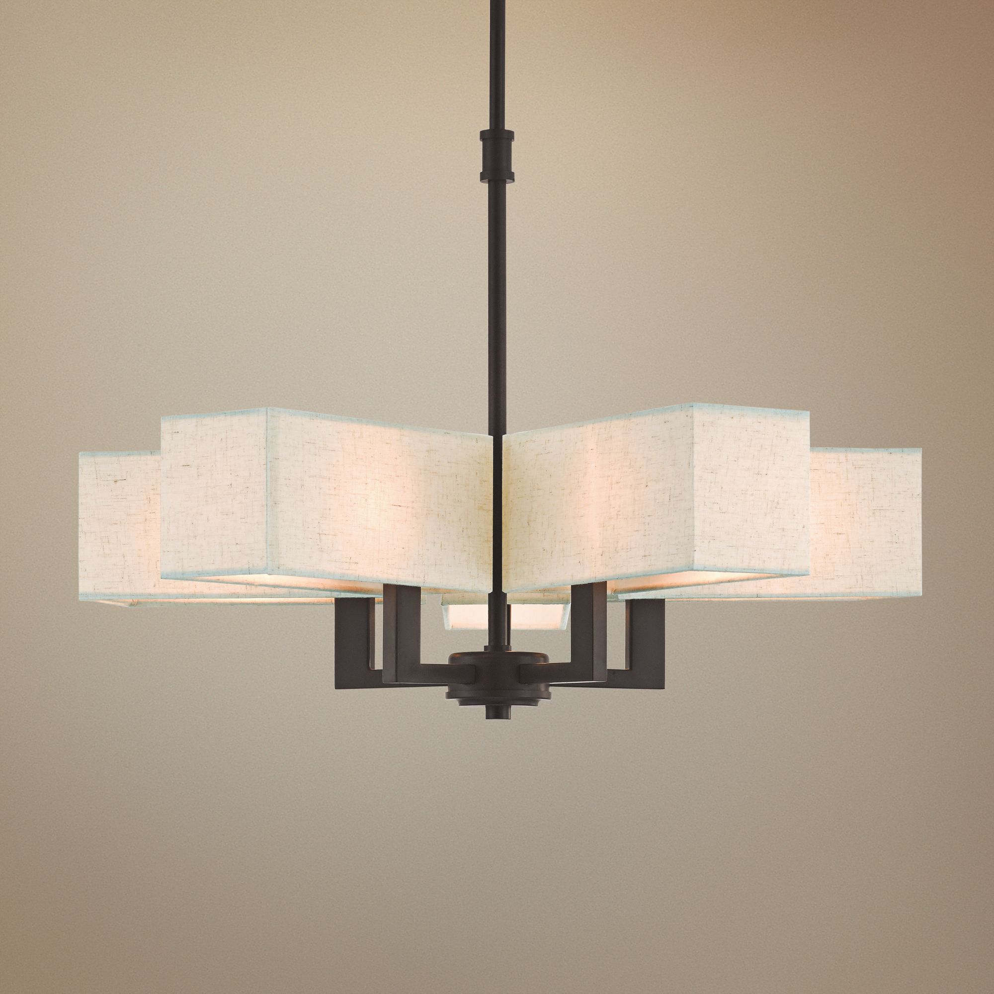 Franklin Iron La Pointe 26" Oatmeal Bronze 5-Light Shade Chandelier