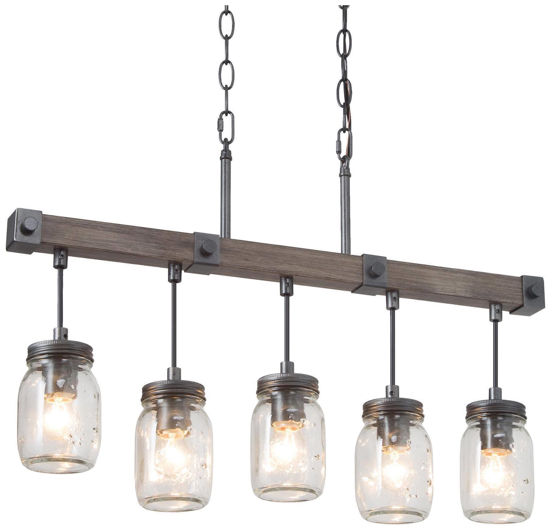 Salvish 25 1/2"W Bronze Wood Grain 5-Light Island Chandelier