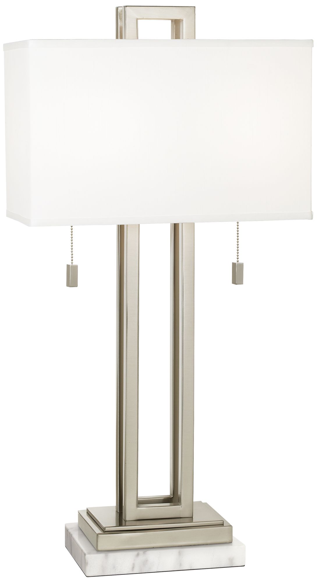 Possini Euro Rectangle 30" Nickel Table Lamp with White Marble Riser