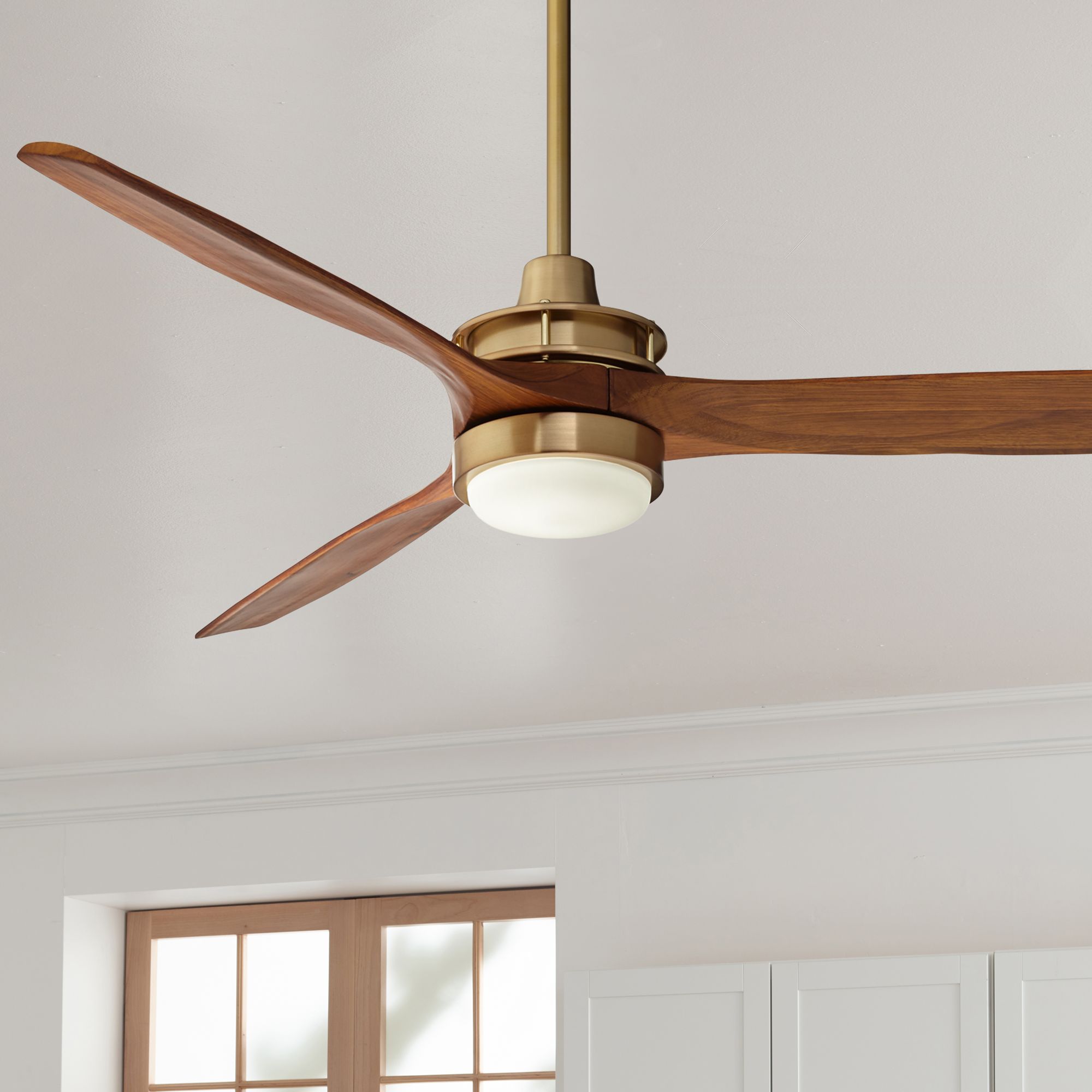 52" Windspun Soft Brass and Natural Wood LED Ceiling Fan with Remote