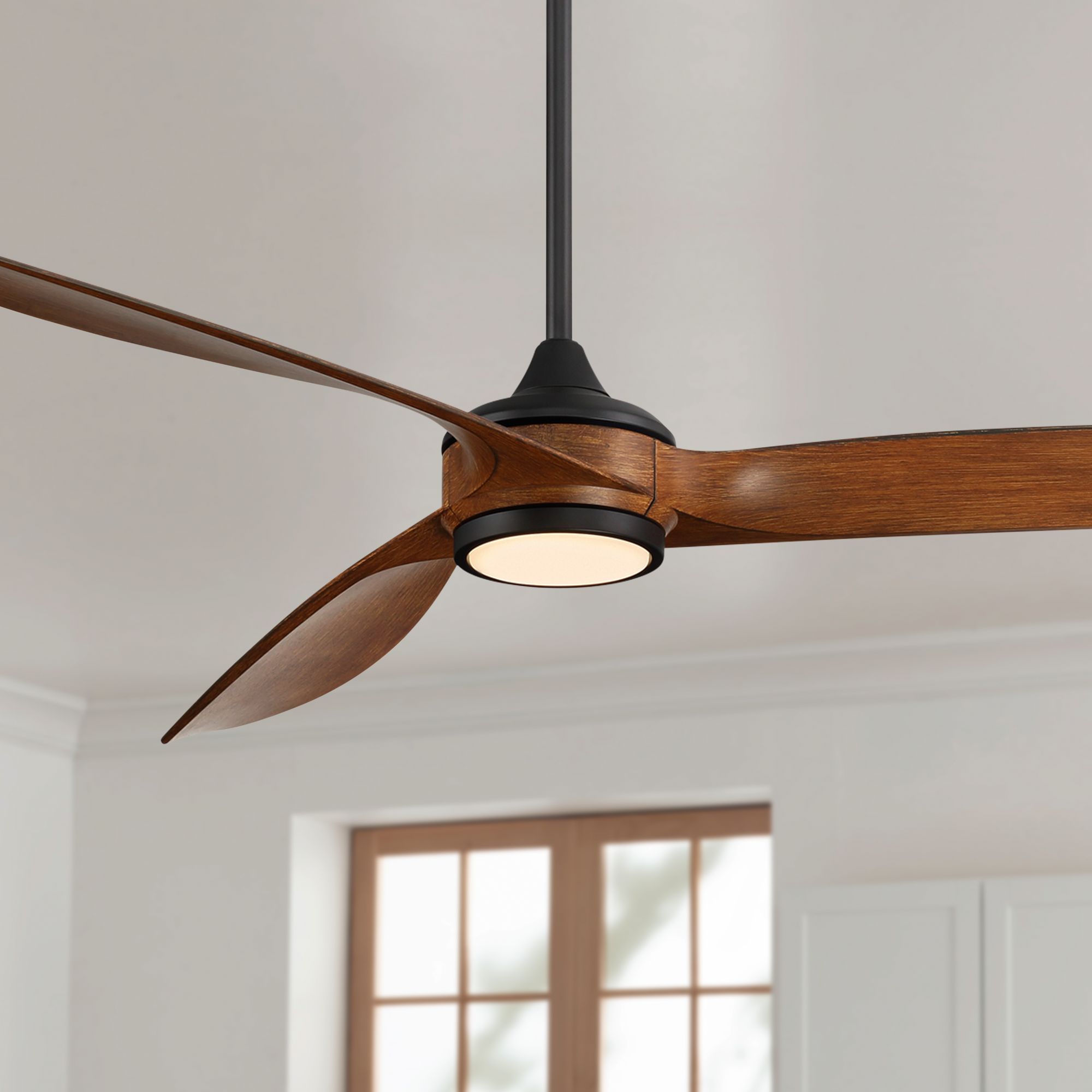 56" Casa Vieja Mach-5 Bronze and Koa LED Damp Ceiling Fan with Remote