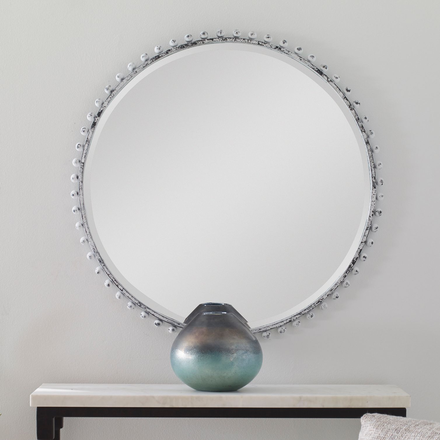 Taza Aged White with Rustic Black 32" Round Wall Mirror