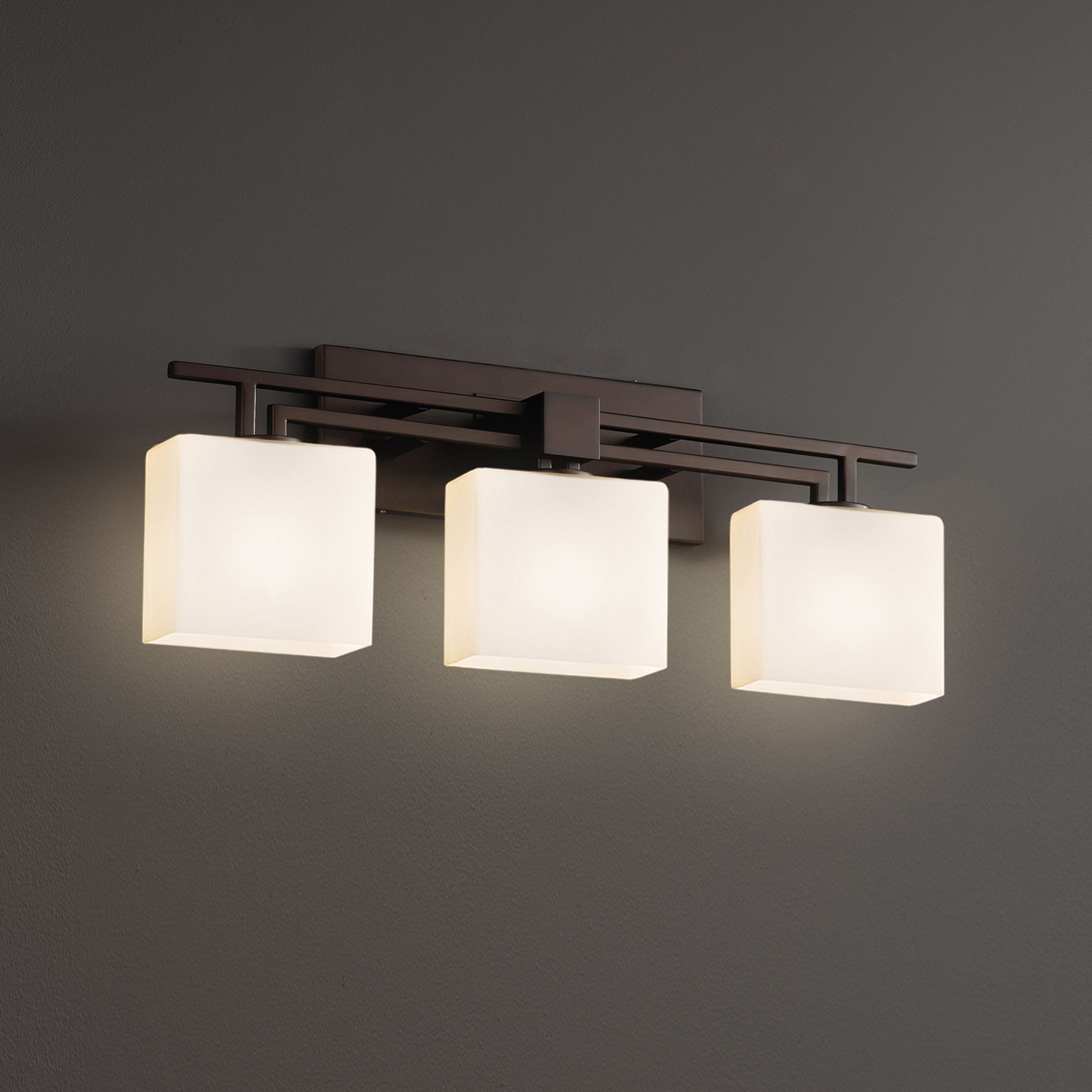 Justice Design Fusion 27" Wide 3-Light Opal and Bronze Bath Light