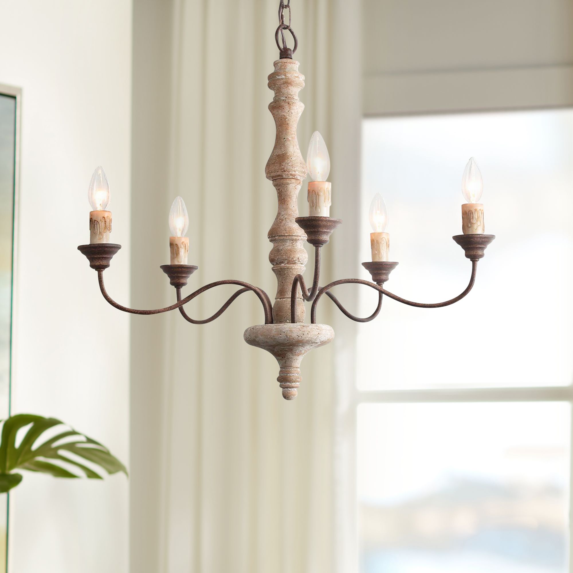 Izuell 23 1/4" Wide Off-White Wood 5-Light Candle Chandelier