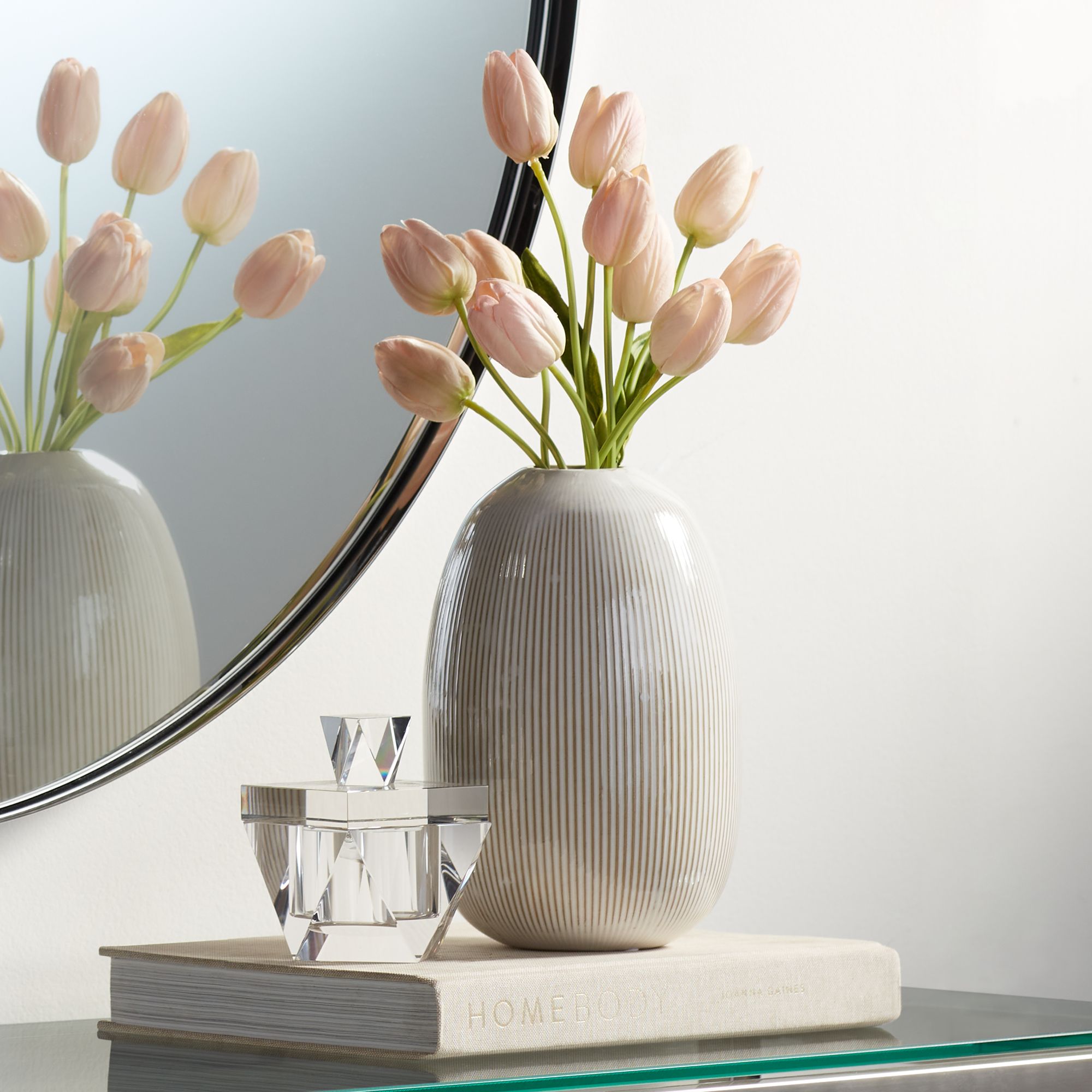 Pilar 8 3/4" High Shiny Beige Ridged Ceramic Vase
