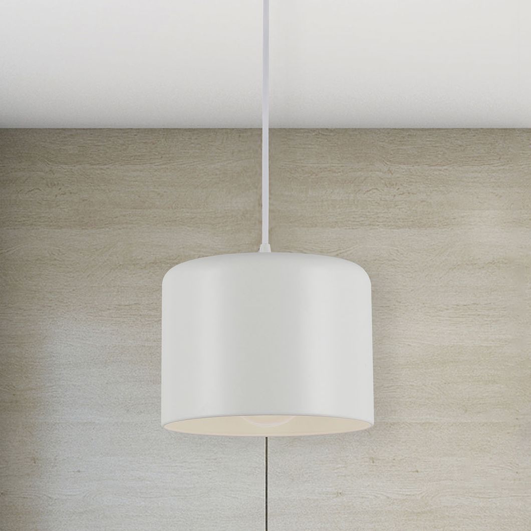 Emilia 8" Wide Painted White Metal Drum Mini Pendant