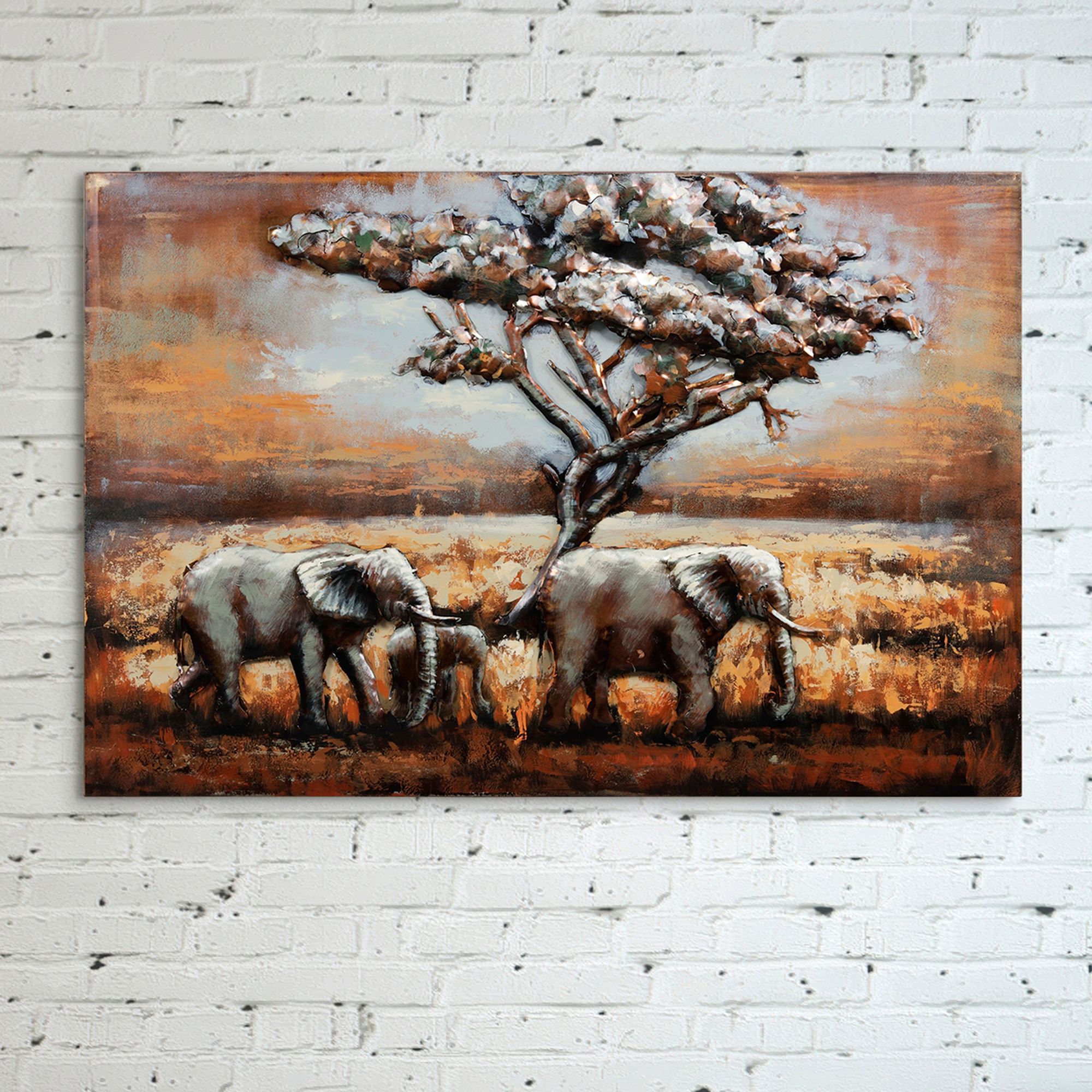 Elephants 48" Wide Mixed Media Metal Dimensional Wall Art