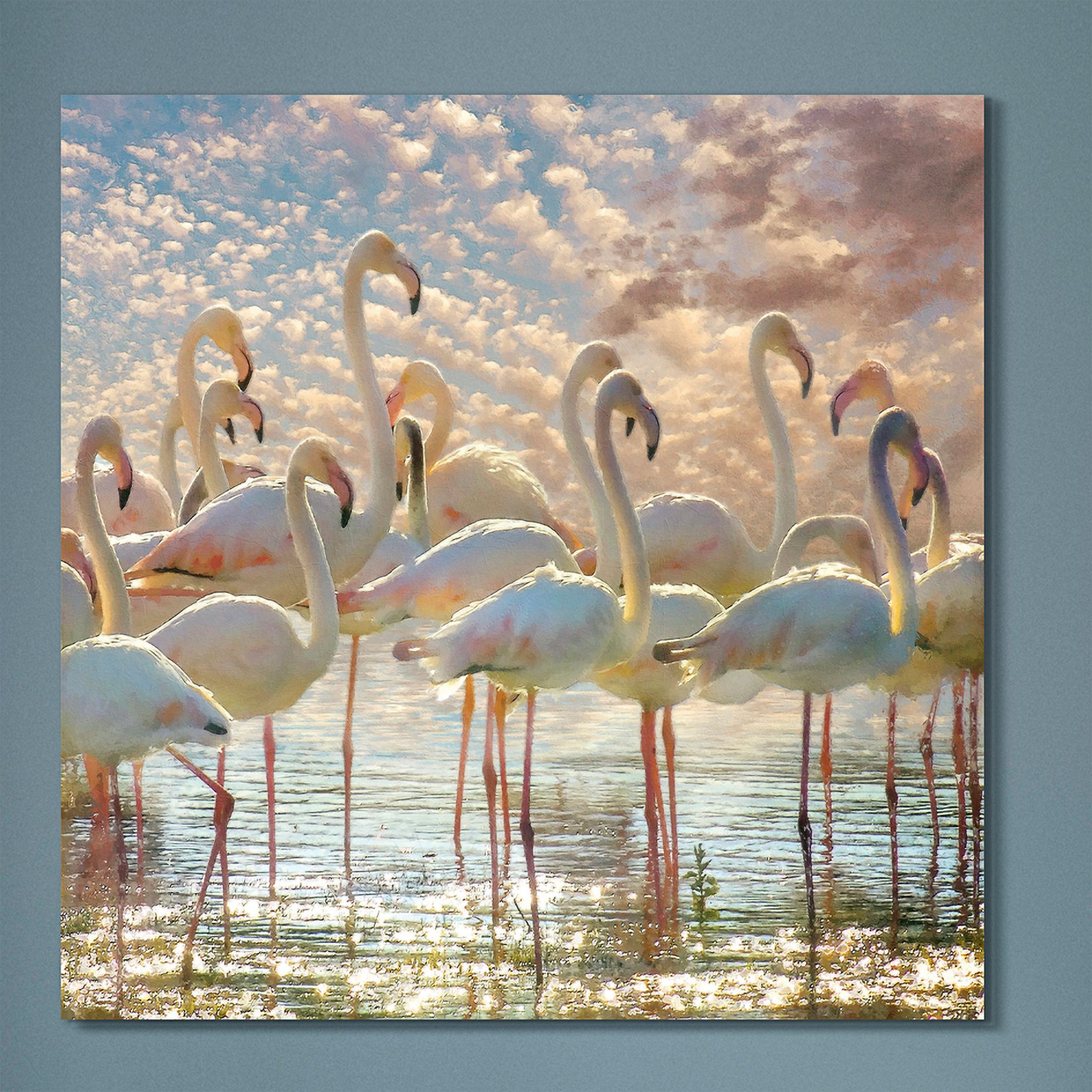 Flamingo Flair 38" Square Frameless Printed Glass Wall Art